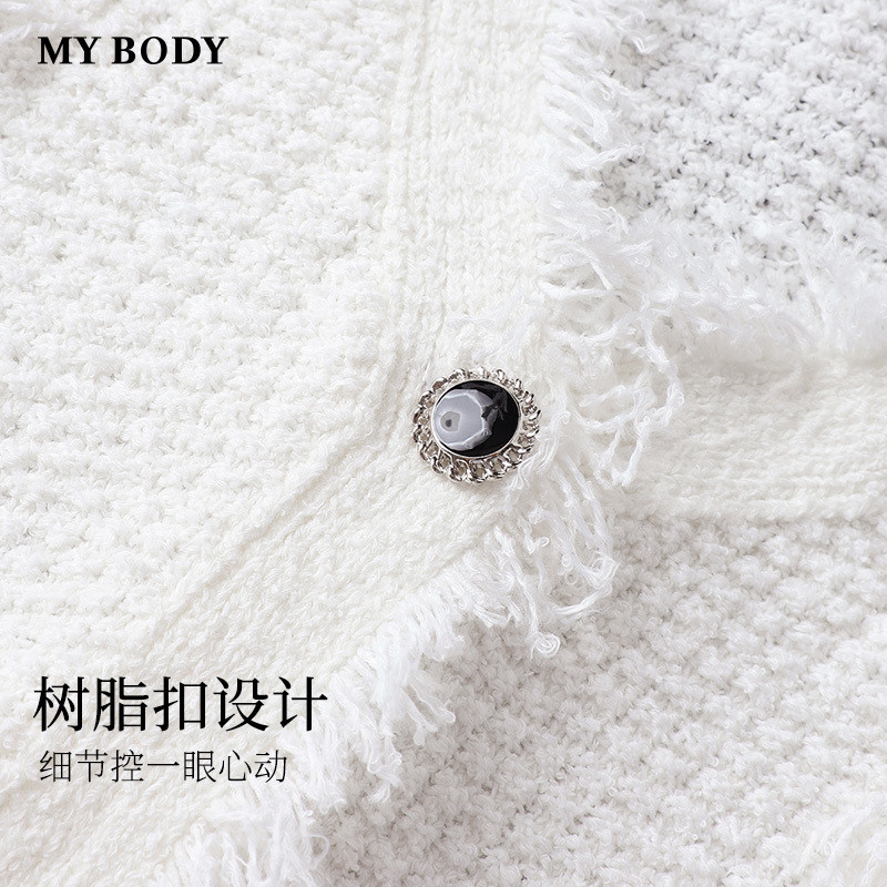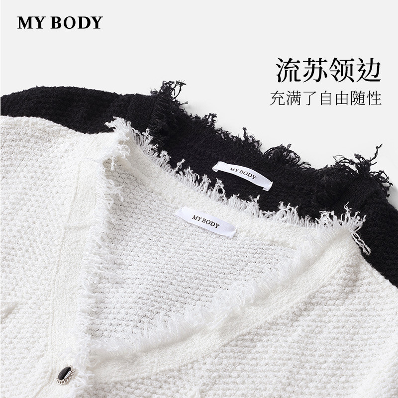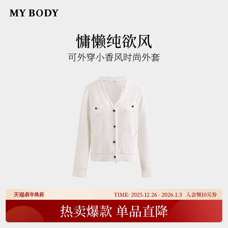 商场同款MYBODY25冬季新款V领流苏可外穿亲肤棉质时尚小香风外套