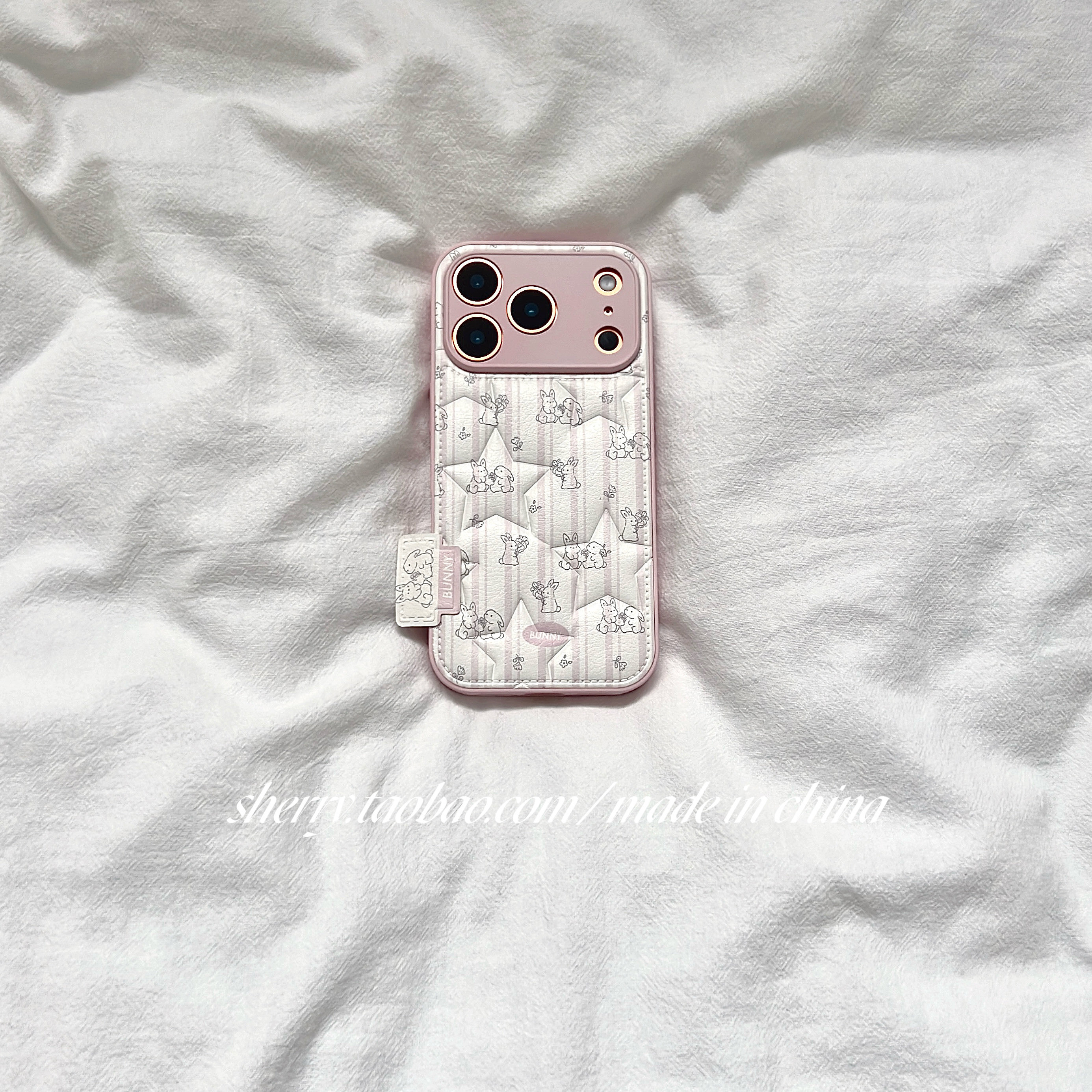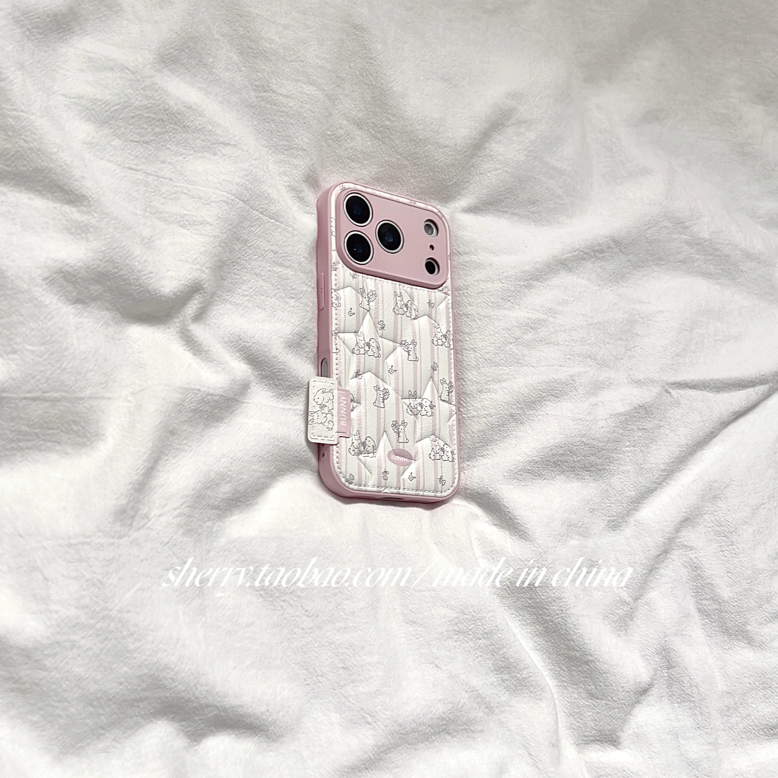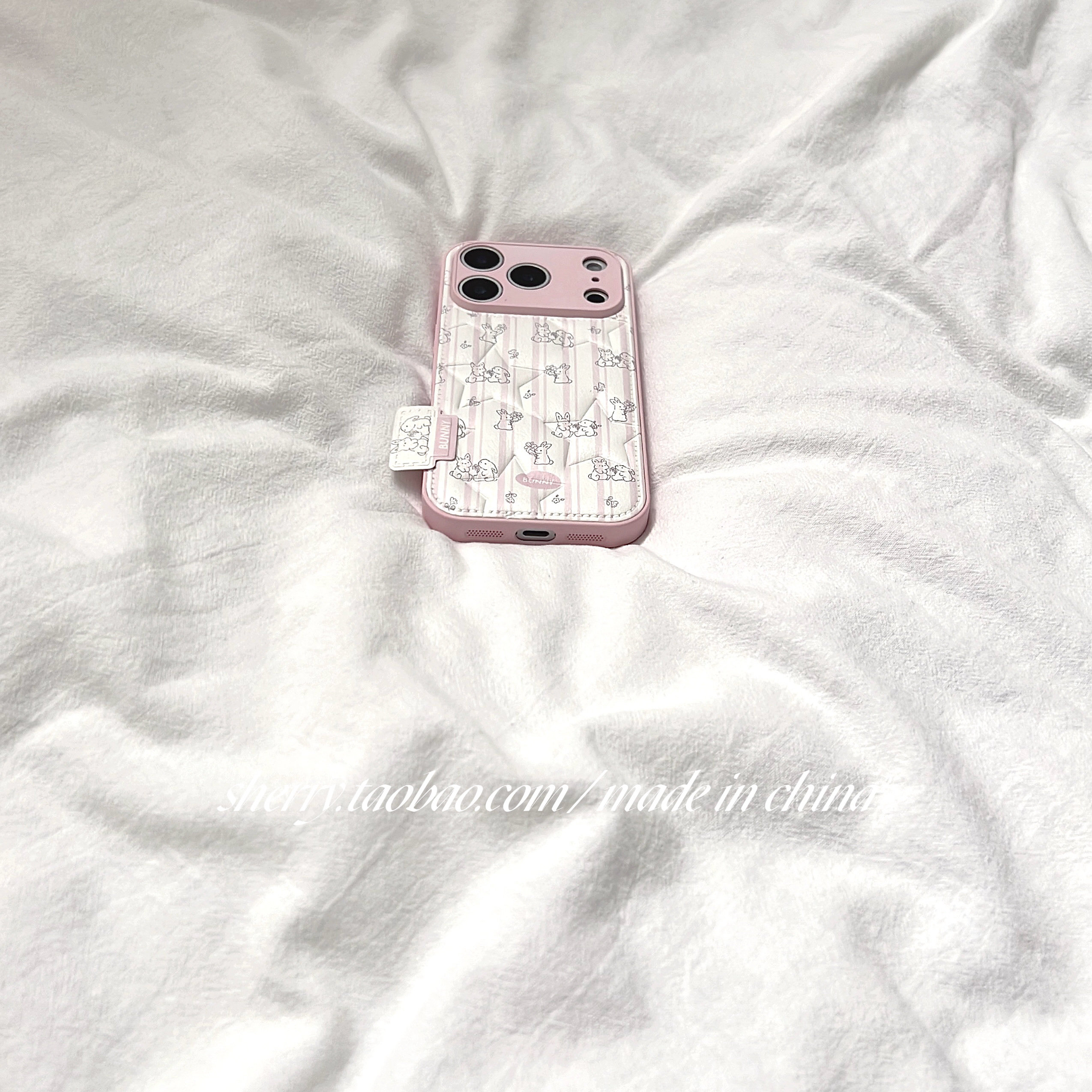 SHERRY*ins风粉白条纹星星压纹兔子适用于苹果17ProMax手机壳iPhone16Pro小众少女心15简约14小清新卡通可爱