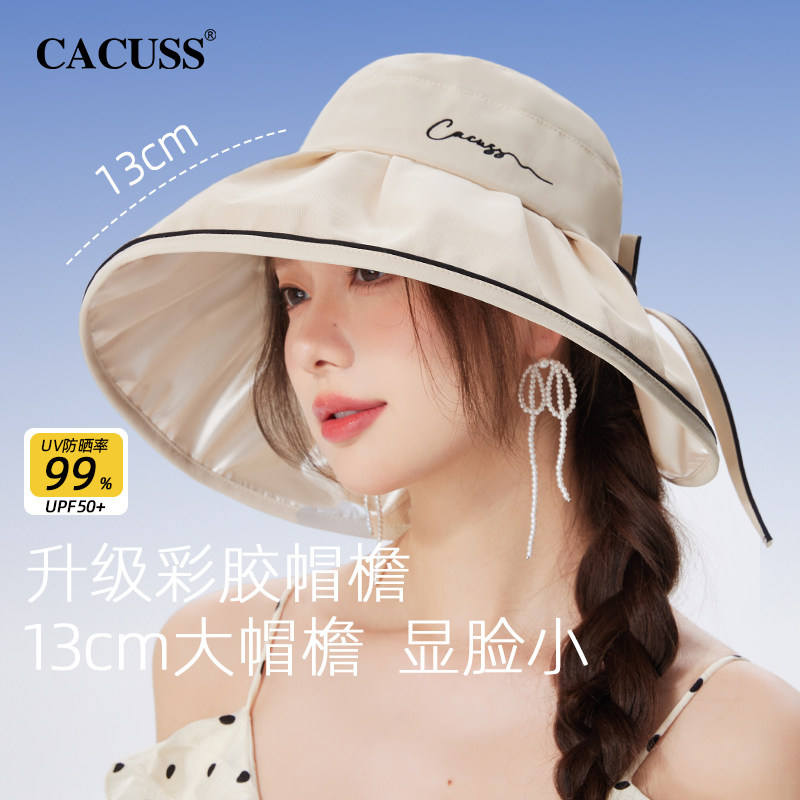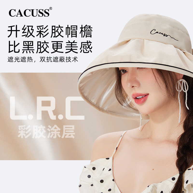 CACUSS防晒帽女夏2025新款遮阳帽防紫外线时尚大檐帽子大头太阳帽