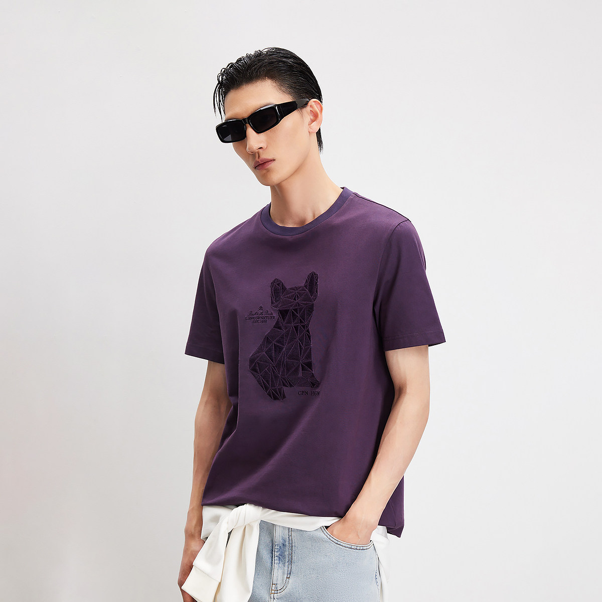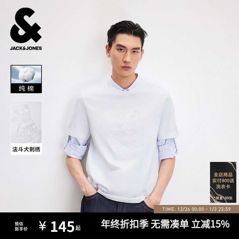 杰克琼斯男装2025年秋季新款刺绣法斗字母男士短袖T恤纯棉打底衫