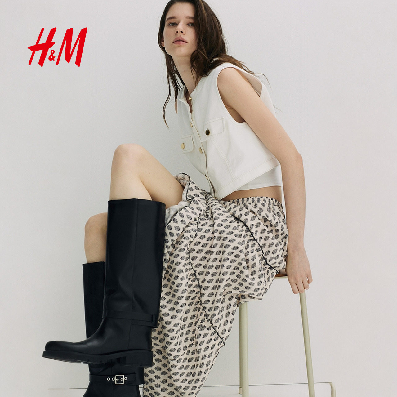 HM女装半身裙2025冬季新款音乐节穿搭辣妹皱感半身长裙1269532