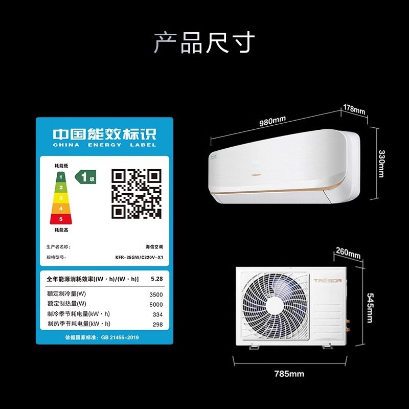 专柜同款海信1.5匹璀璨新风空调C320V-X1增氧新一级家用挂机101