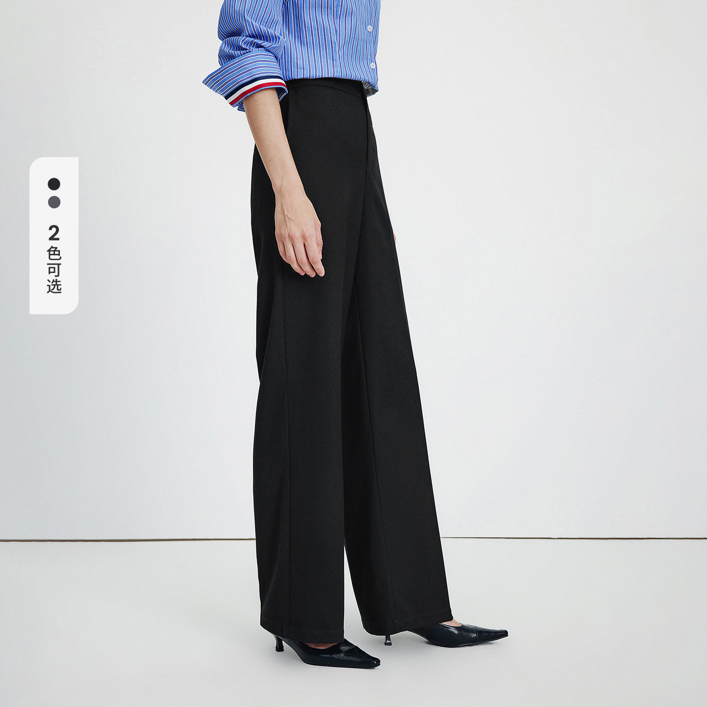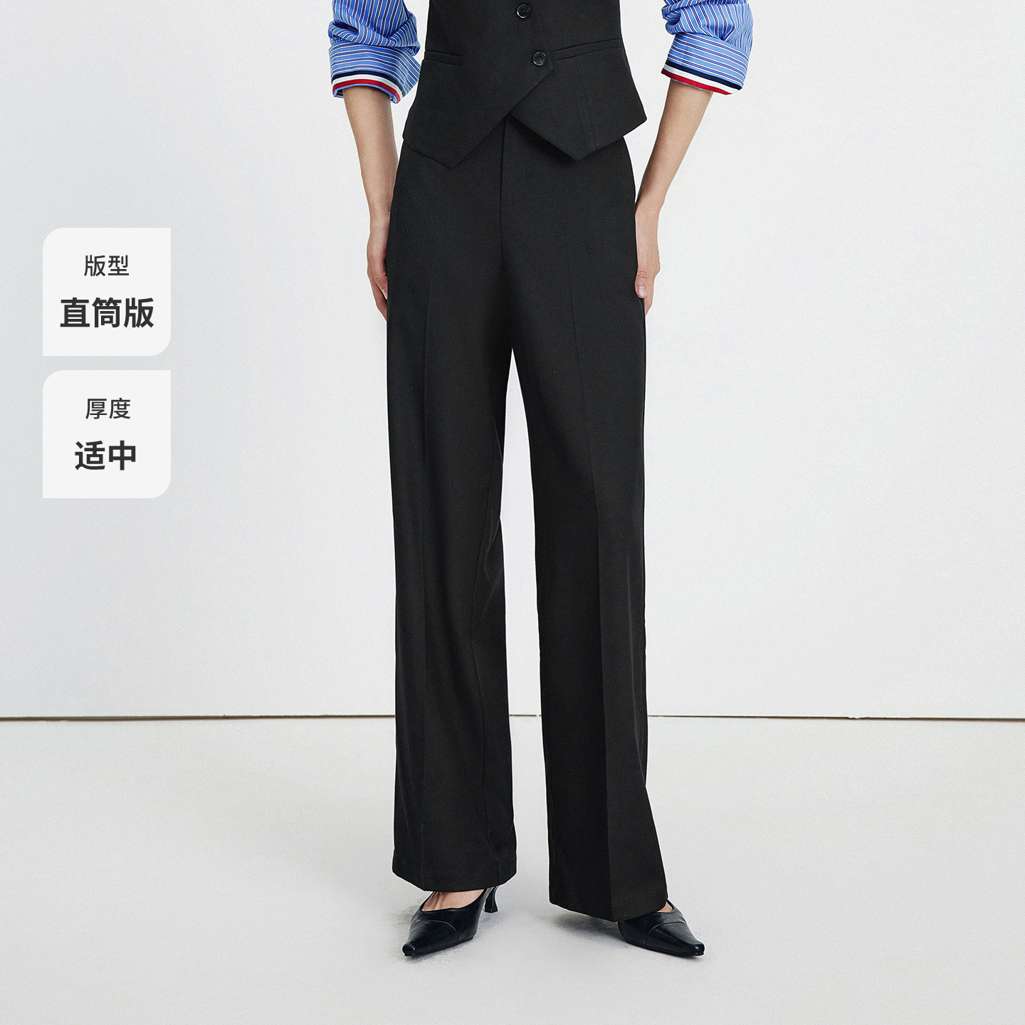 MissWiss直筒裤子女2025新款长裤休闲高腰收腹提臀黑色垂感阔腿裤