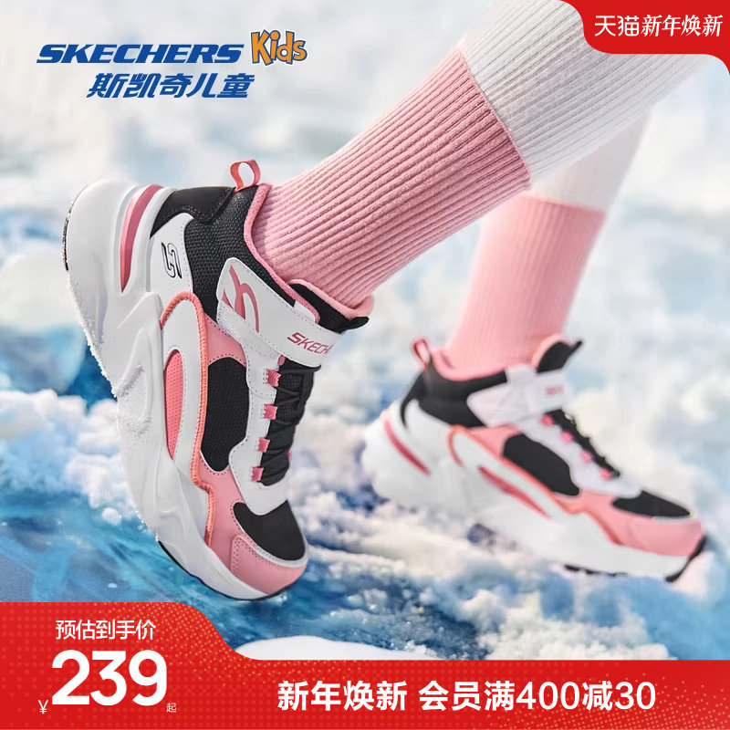 Skechers斯凯奇儿童运动老爹鞋保暖棉靴冬季童鞋女童防滑二棉鞋