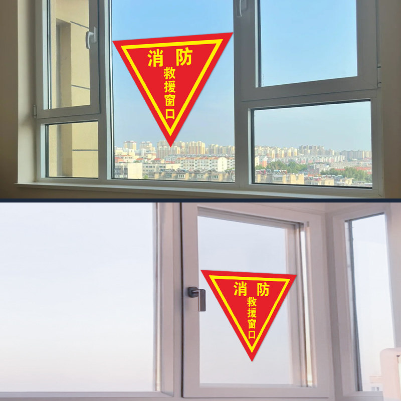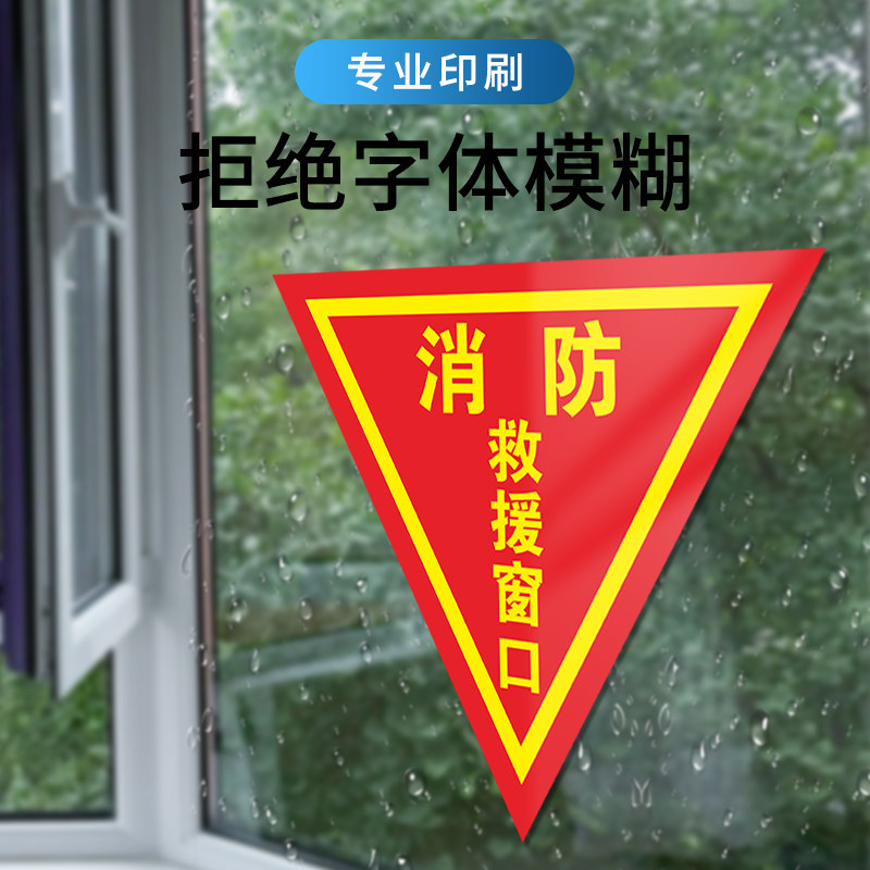 消防救援窗口标识贴双面消防标识标牌紧急应急安全逃生窗玻璃贴纸指示牌三角标志防晒自粘防火窗透明标签定制