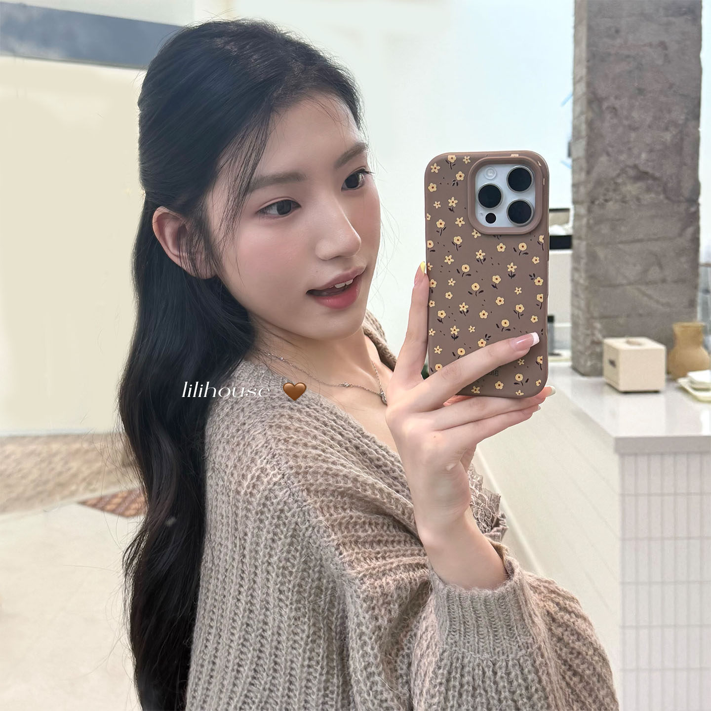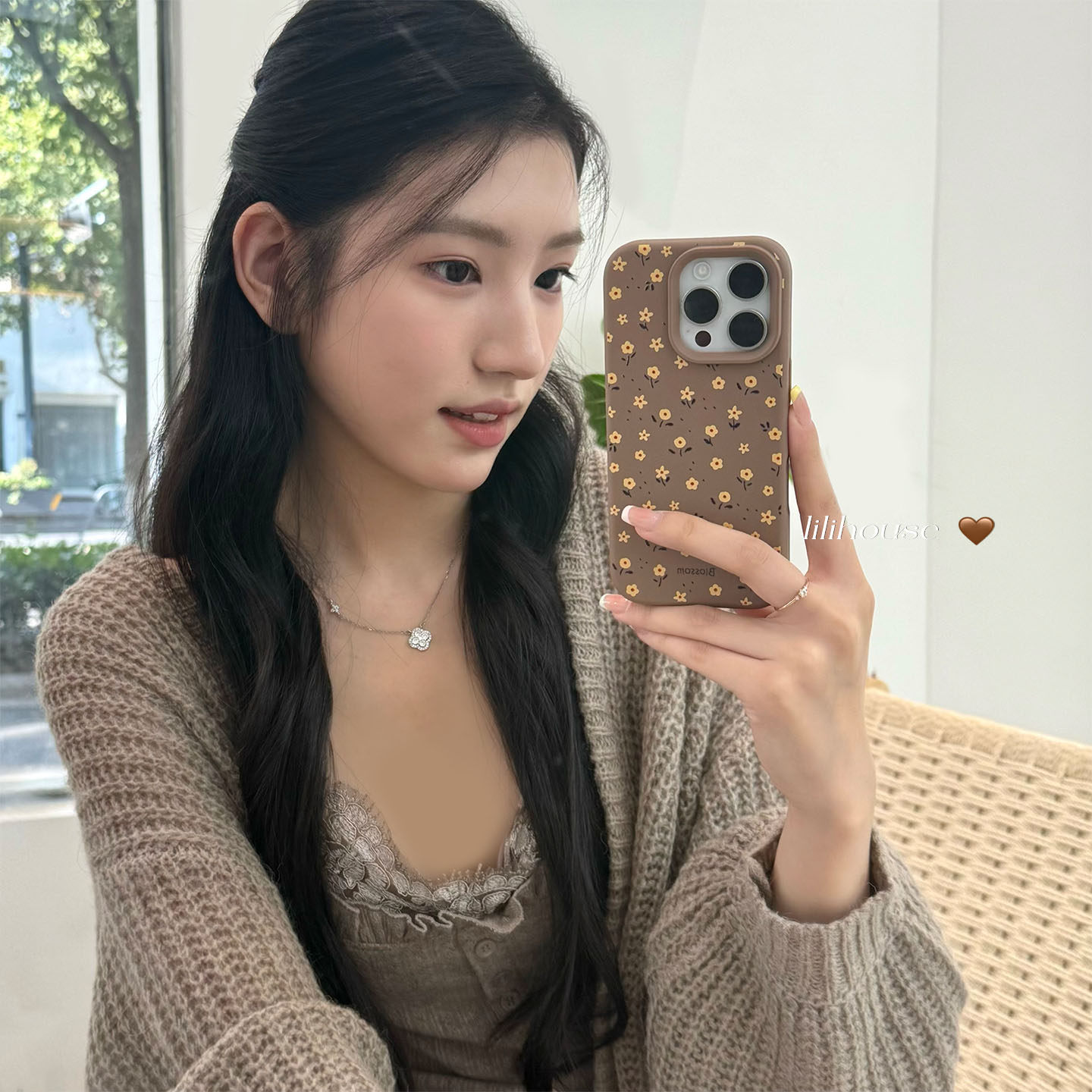 lilihouse韩国ins秋冬复古美拉德栗子棕小碎花17适用17pro苹果17ProMax手机壳iPhone16全包15硅胶14Pro保护套