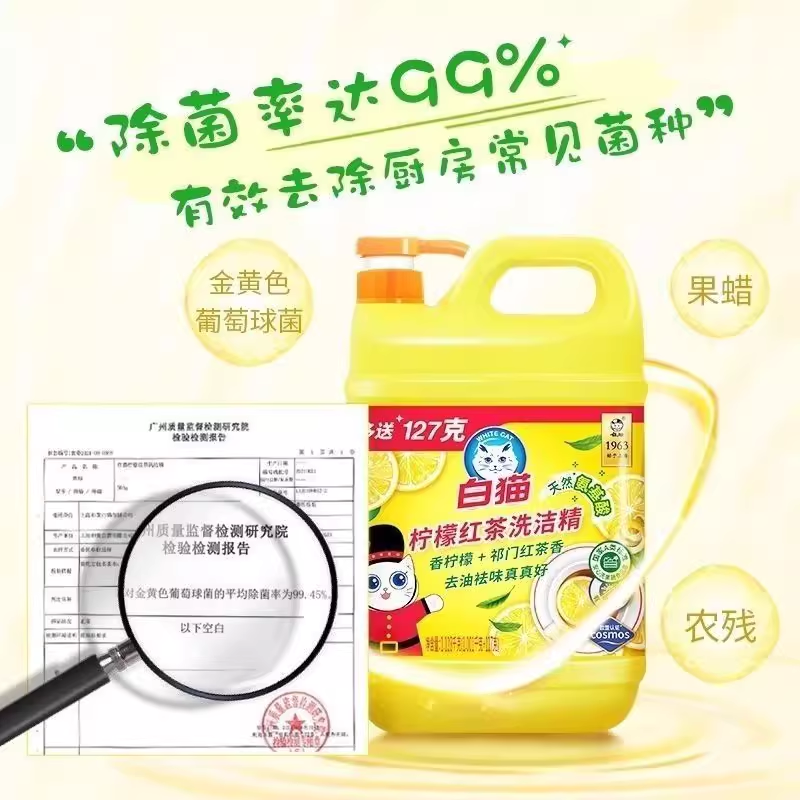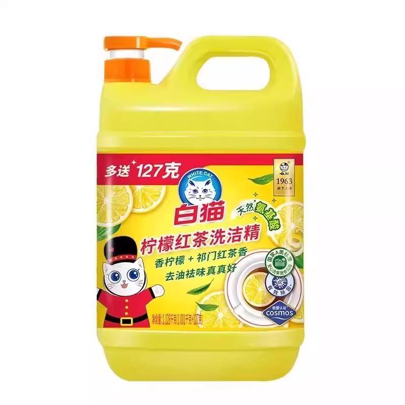 白猫洗洁精家用柠檬红茶1.128kg果蔬洗碗厨房正品洗涤剂洁净去油