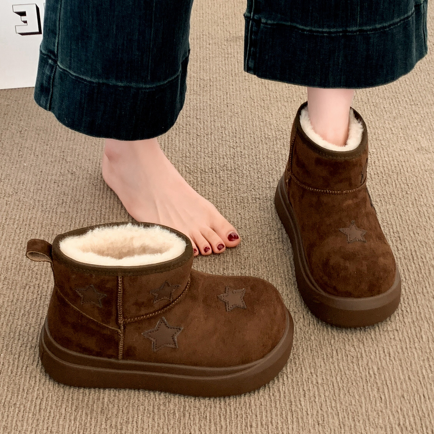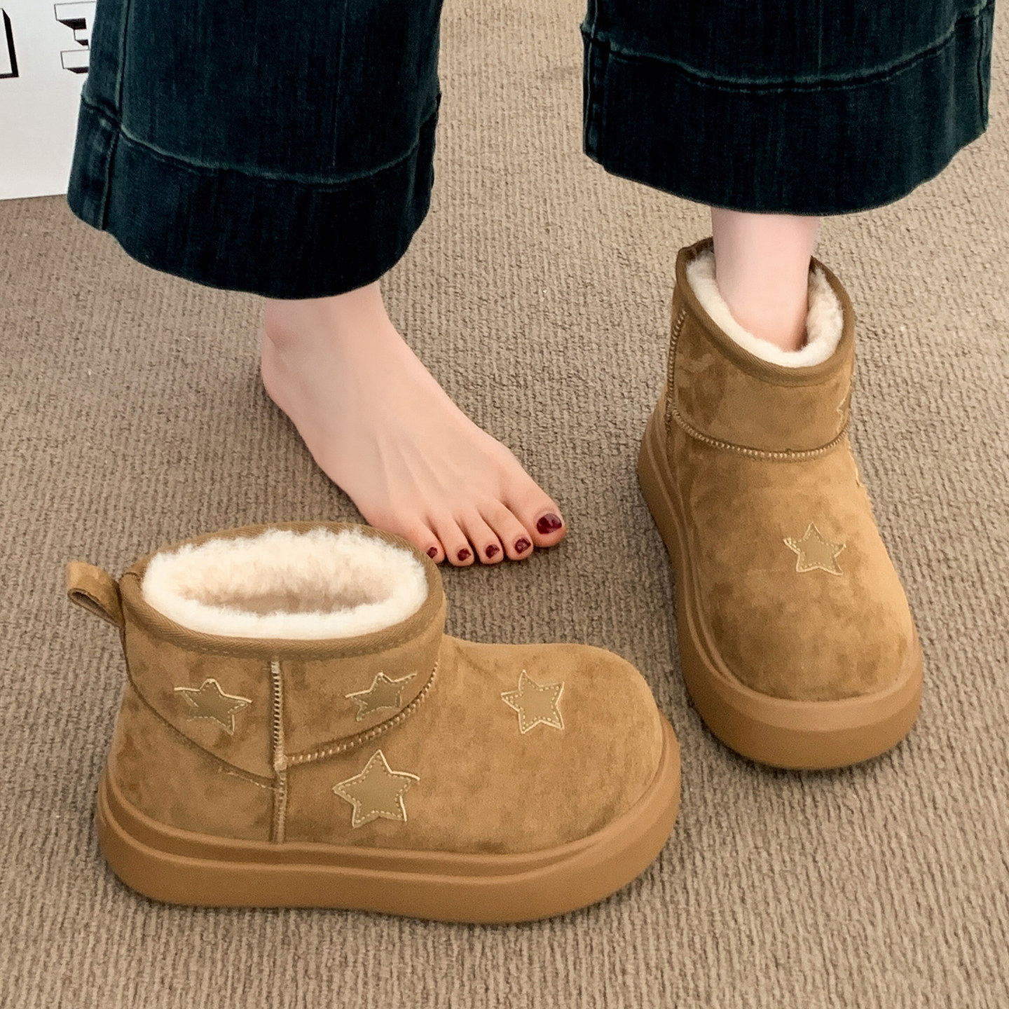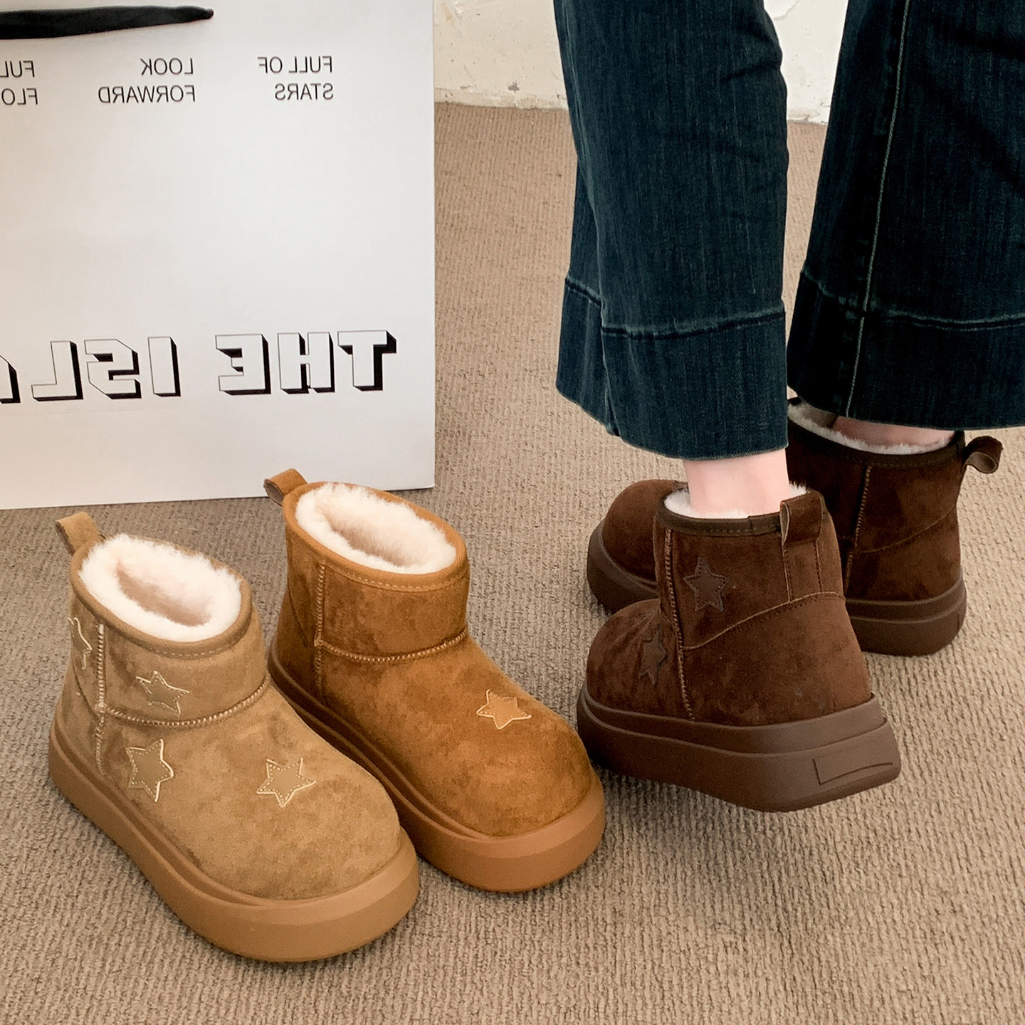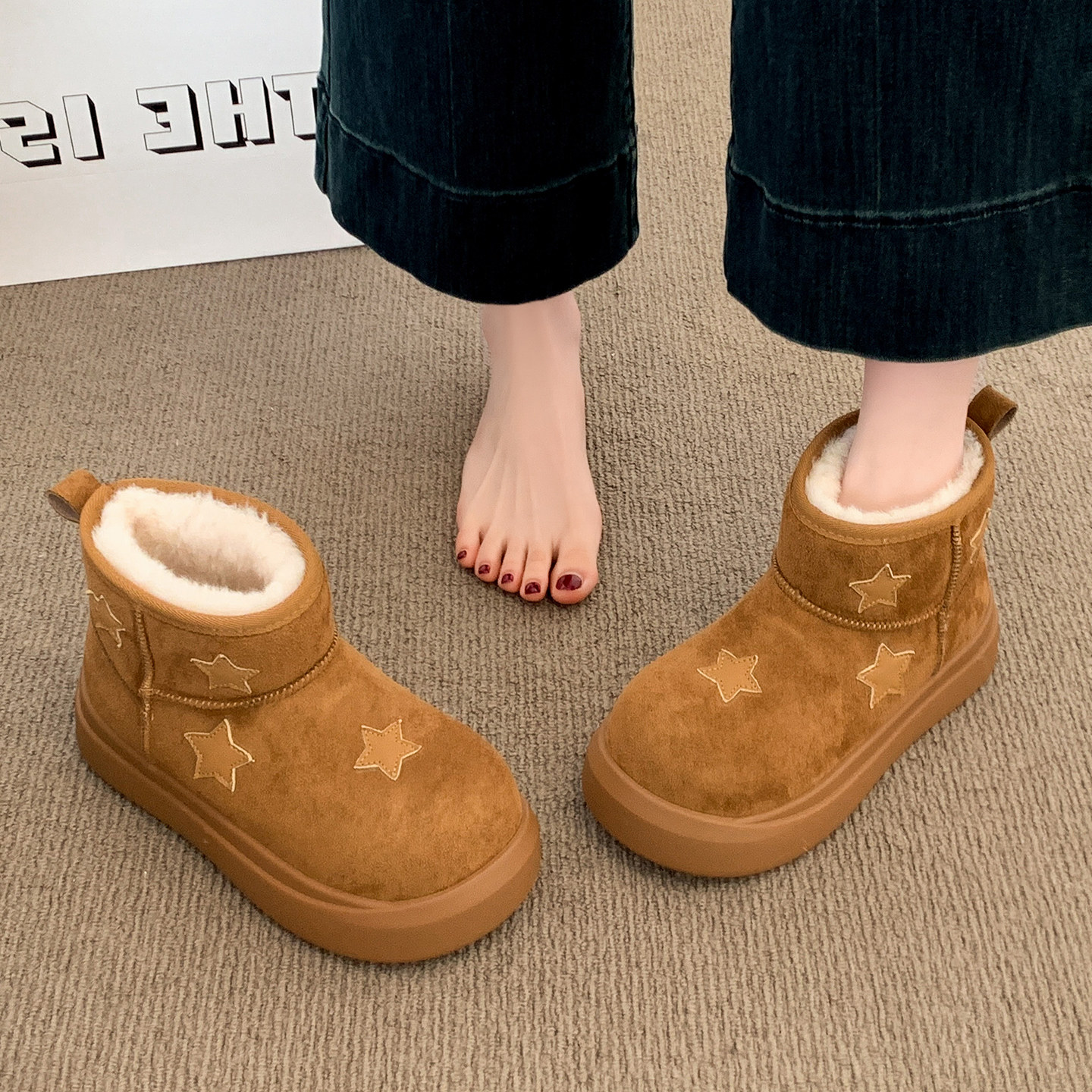 复古星星厚底雪地靴女款2025新款冬季加绒加厚保暖短靴软底棉鞋子