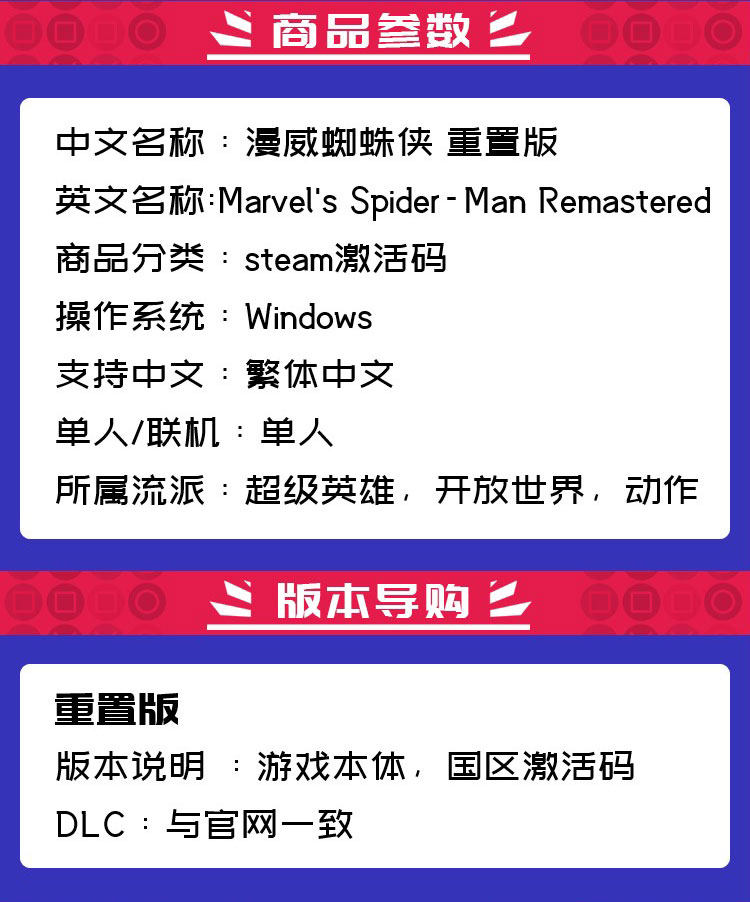 steam 国区 漫威蜘蛛侠重制版 Marvel's Spider-Man Remastered