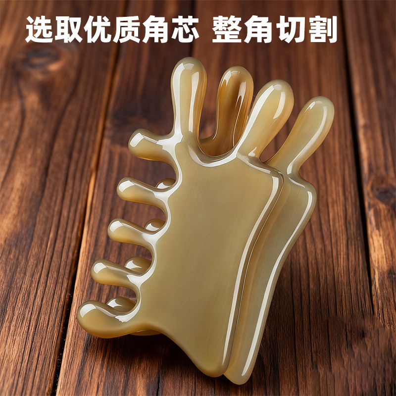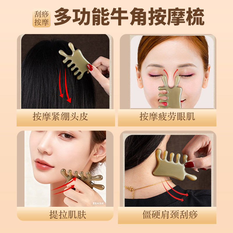 天然白水牛角按摩梳子四合一头皮经络女头疗多功能脸面部刮痧板真