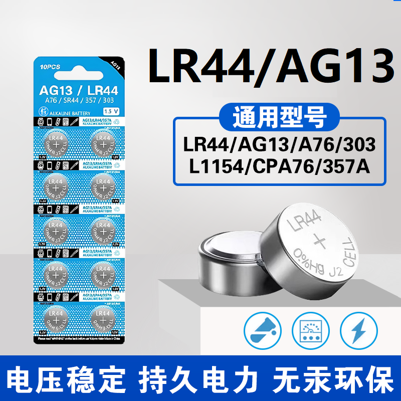 LR44纽扣电池AG13/A76 L1154 357a电子手表玩具遥控器计算机sr44wh小型号1.5v伏碱性通用式游标卡尺