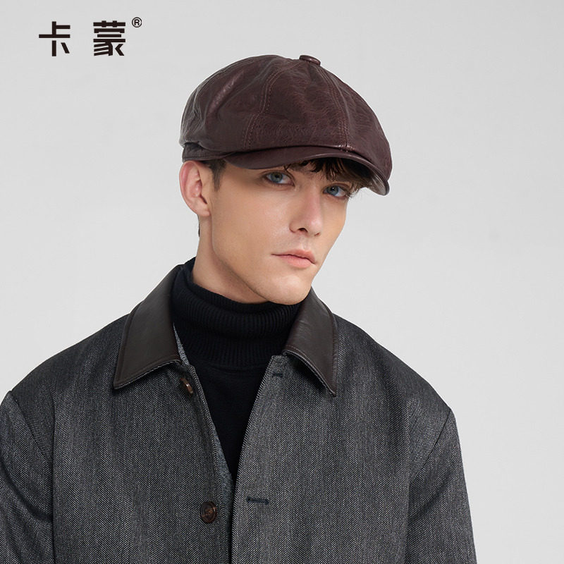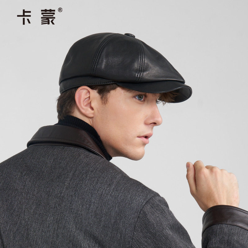 卡蒙英伦复古真皮贝雷帽秋冬防风加绒保暖绅士前进帽子大头围