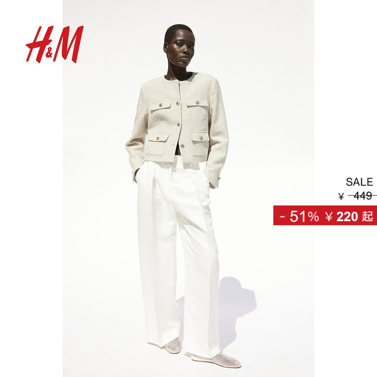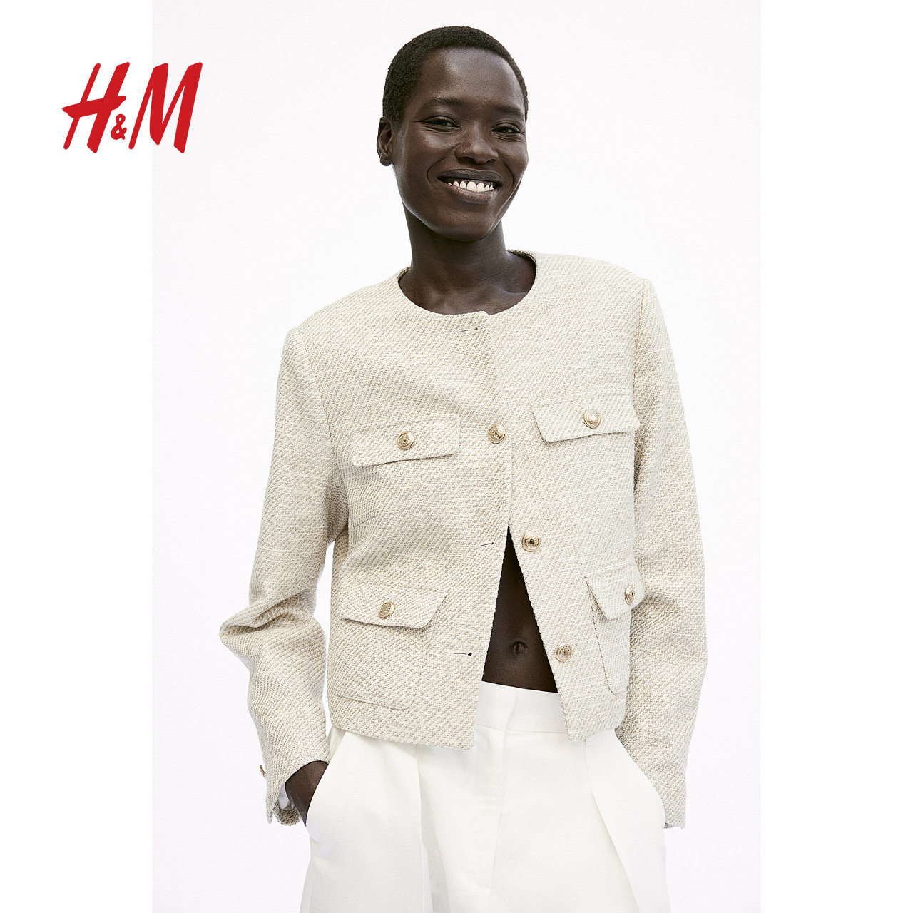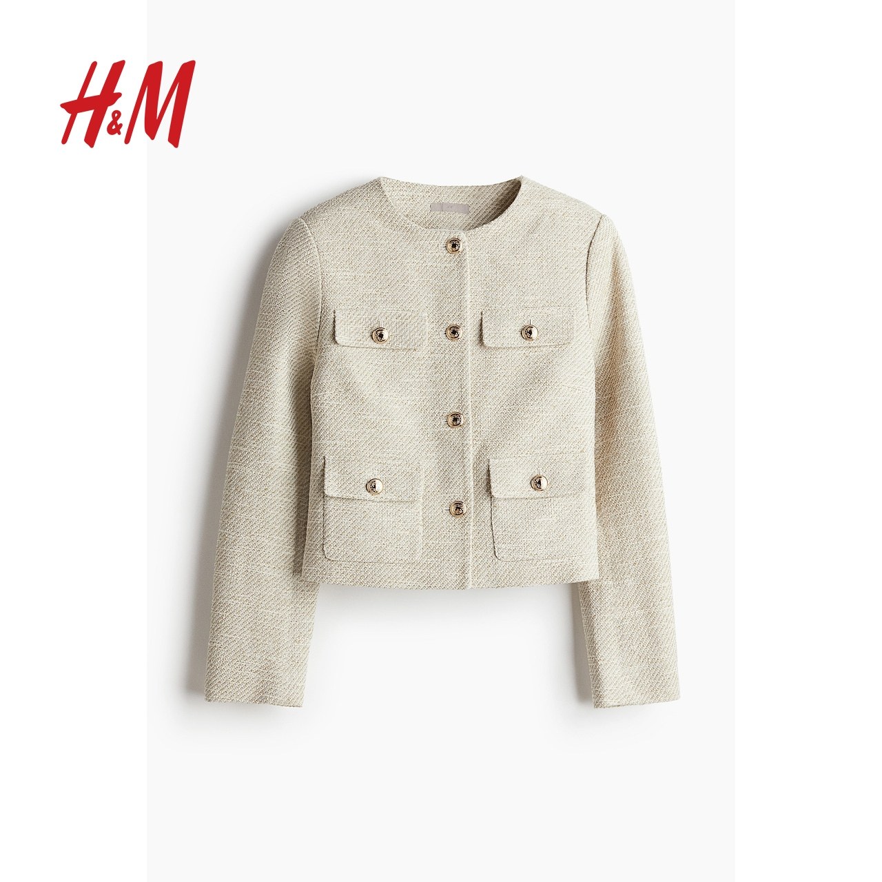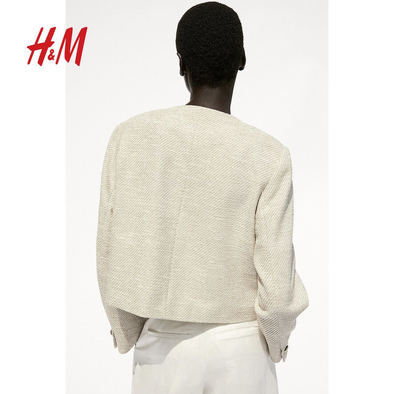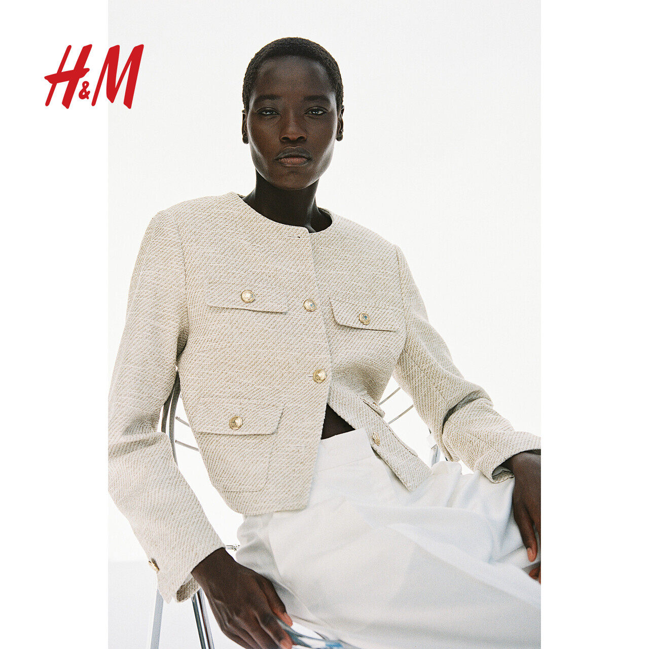 HM女装外套冬季新款简约潮流时尚纹理编织廓形小香风外套1241437