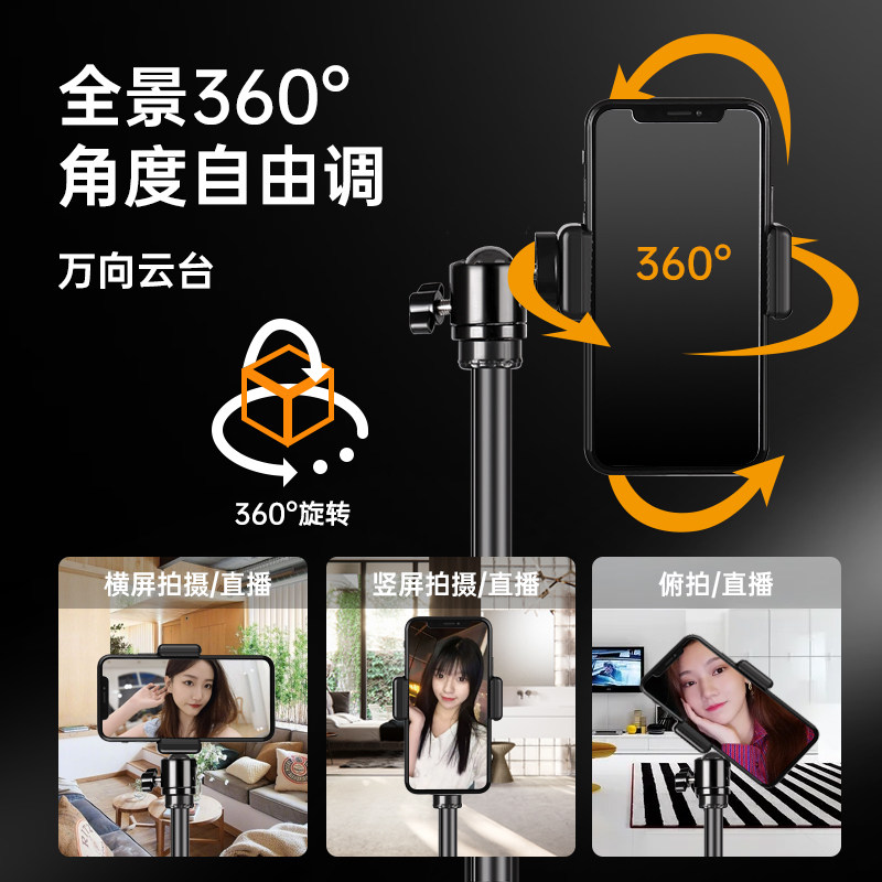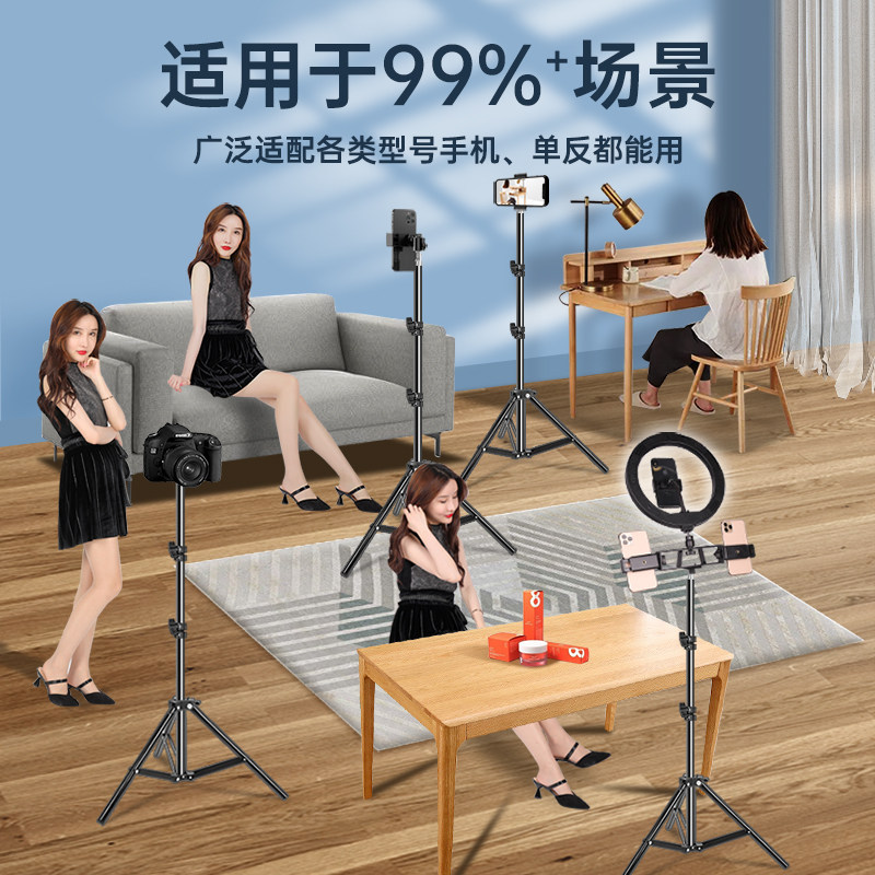 手机拍摄支架直播专用自拍杆三脚架落地式多功能支撑架通用捭机架户外便携伸缩升降网课考研复试架子三角支夹