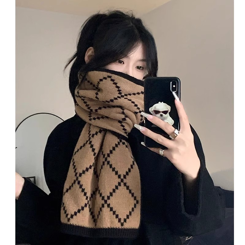 【王俊凯同款】骆驼针织保暖围巾冬季防风百搭男女毛线情侣围脖