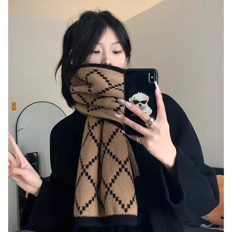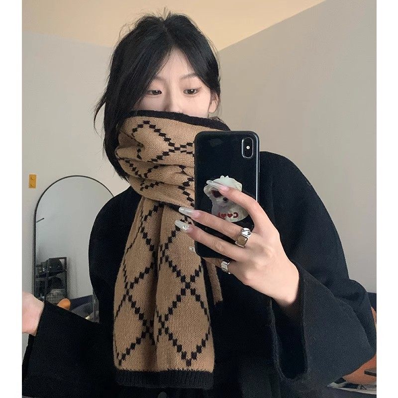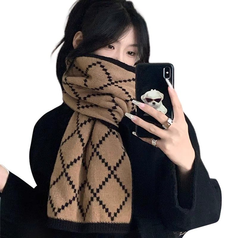 围巾女冬季2025新款韩系百搭高级氛围感保暖披肩毛线针织格子围脖