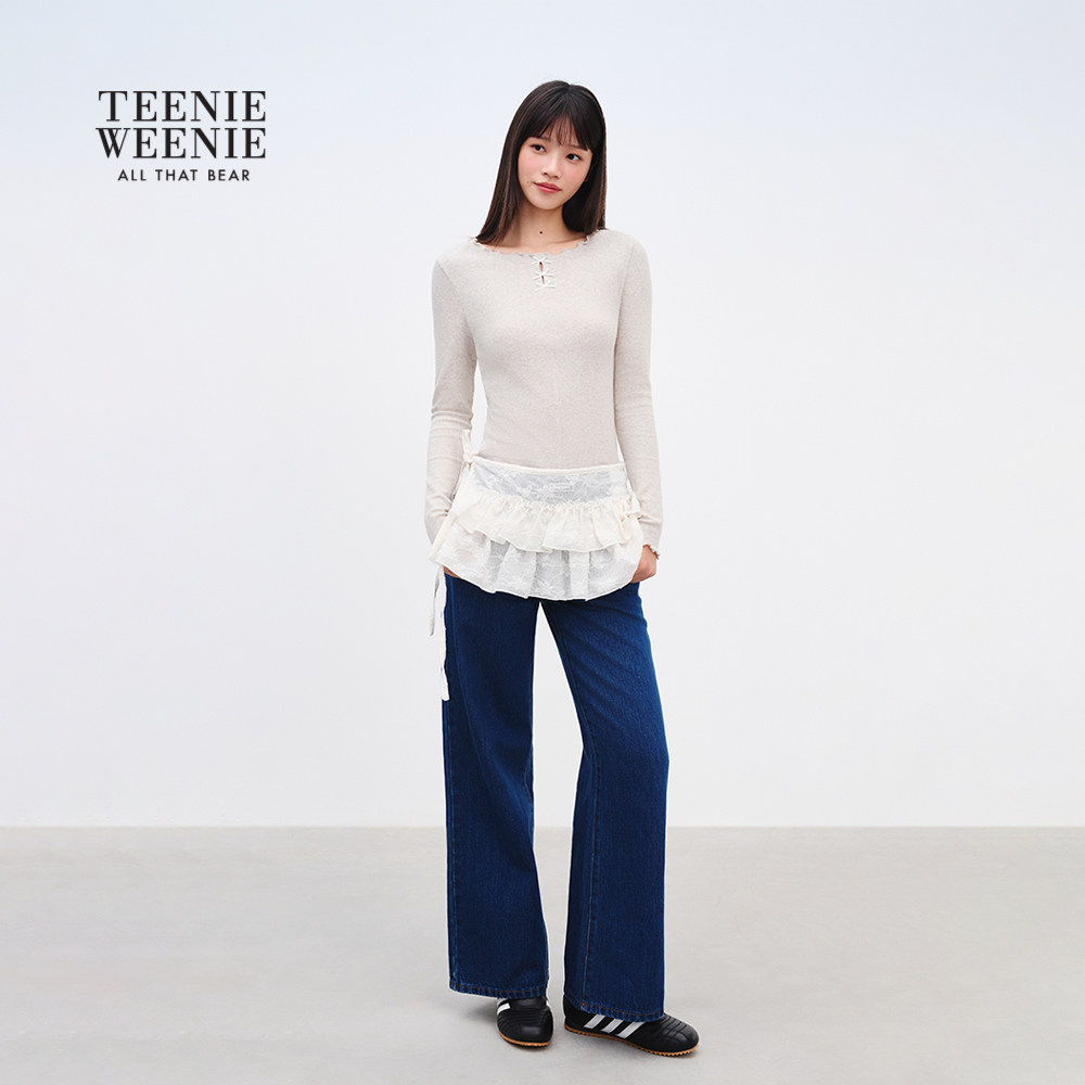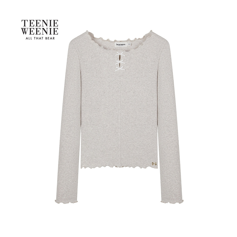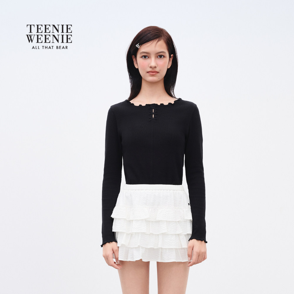 TEENIEWEENIE bearnova2025年秋季新款女装气质甜美花边领长袖T恤