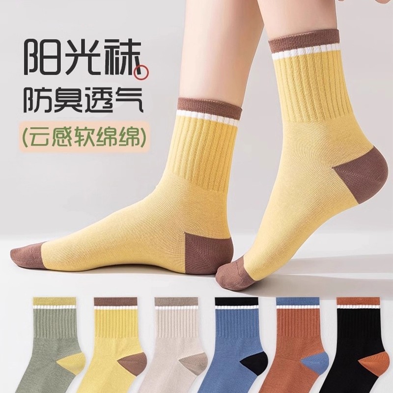 袜子女款纯棉中筒袜秋冬季抗菌防臭吸汗运动棉袜春秋款无骨短筒袜