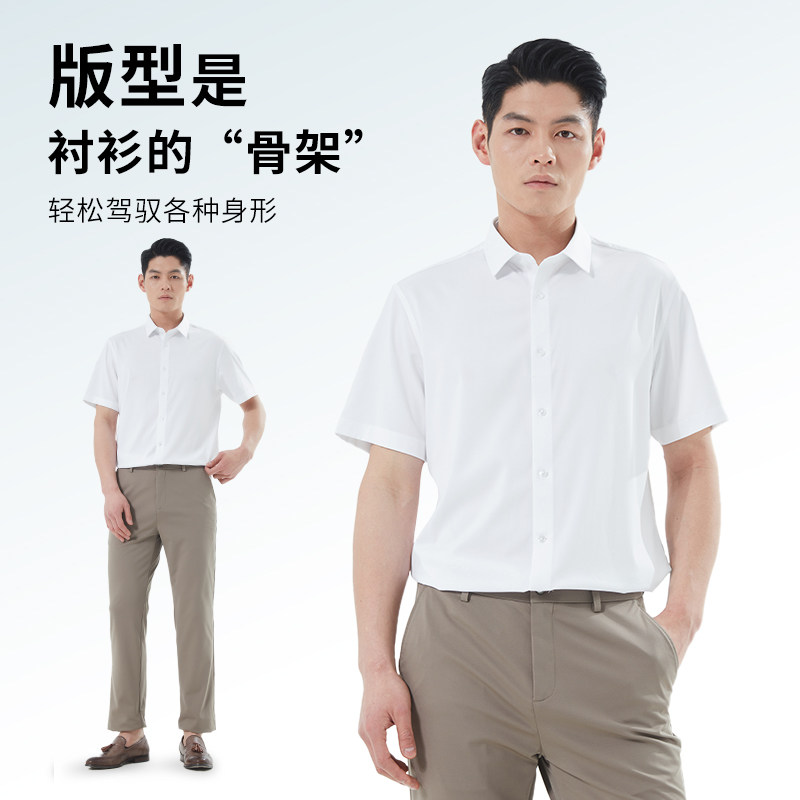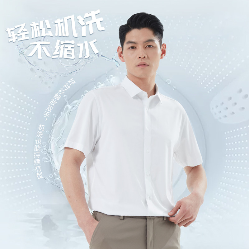 杉杉奥莱男士短袖衬衫2025新款夏季男装上衣三防商务休闲白色衬衣