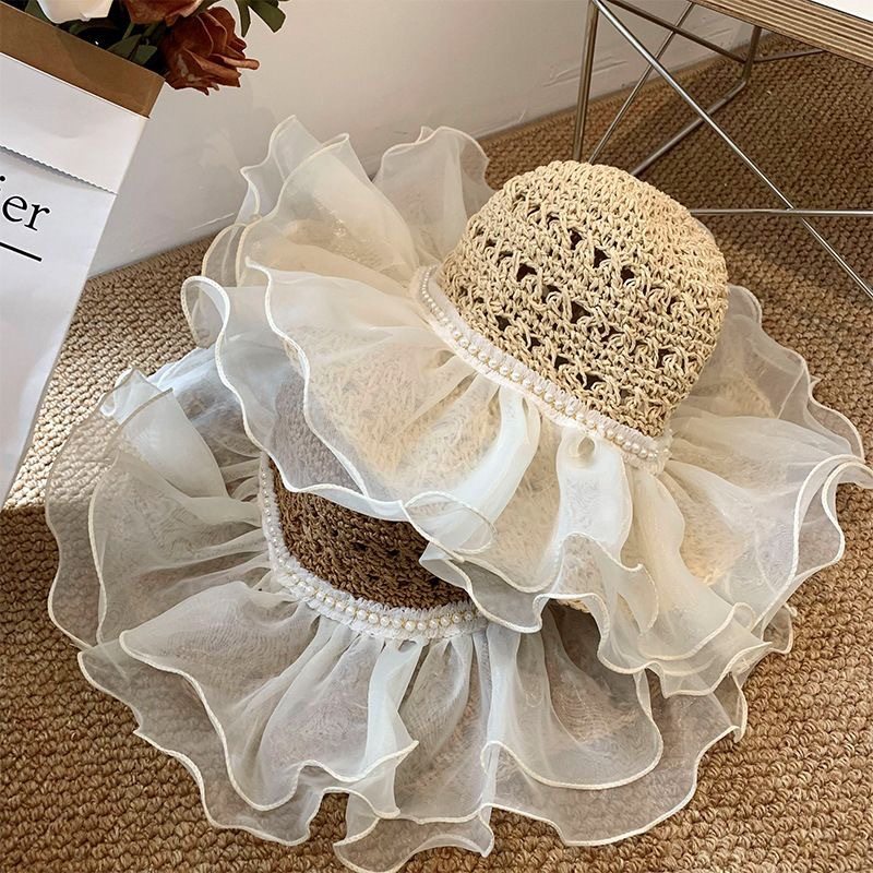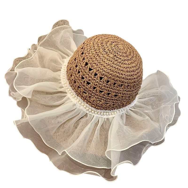 欧根纱真丝草帽女2025夏季新款大帽檐遮阳太阳帽子海边沙滩防晒帽