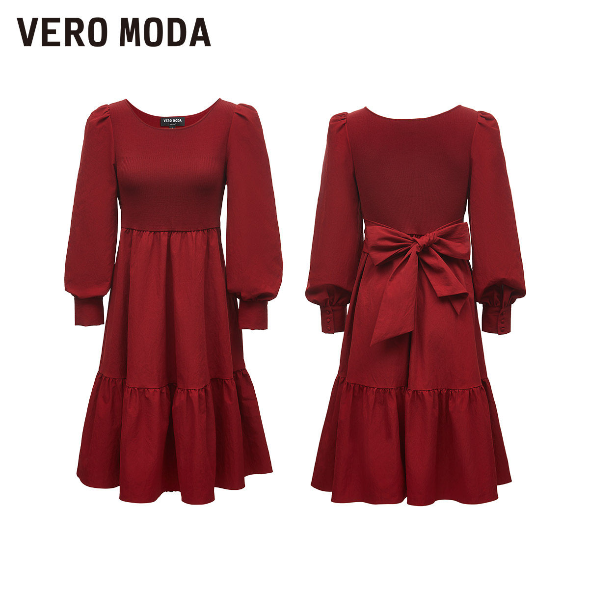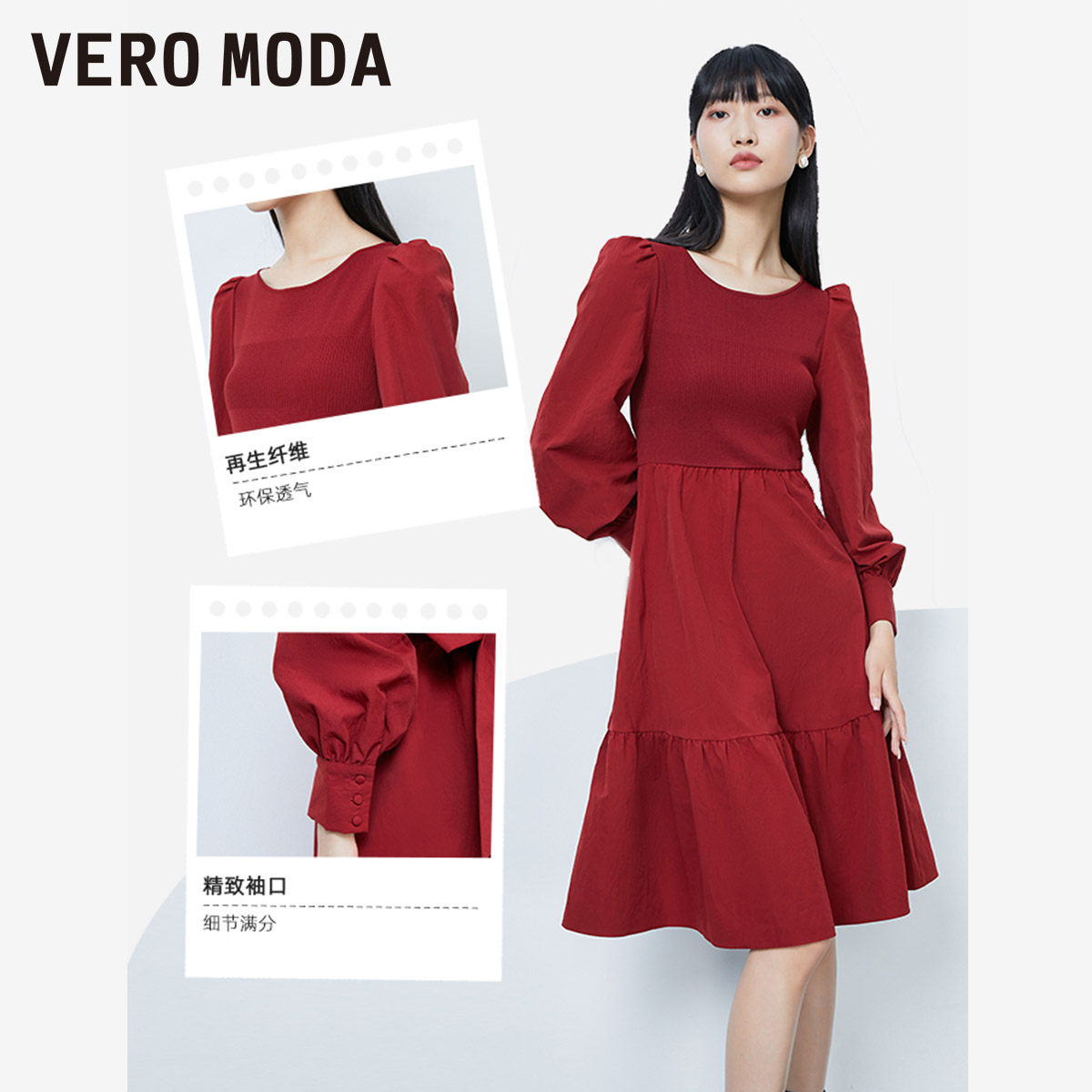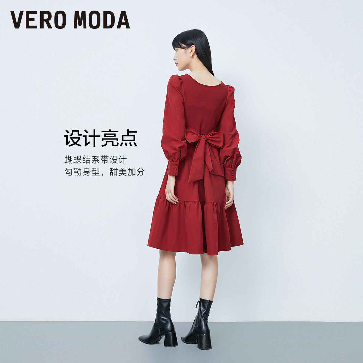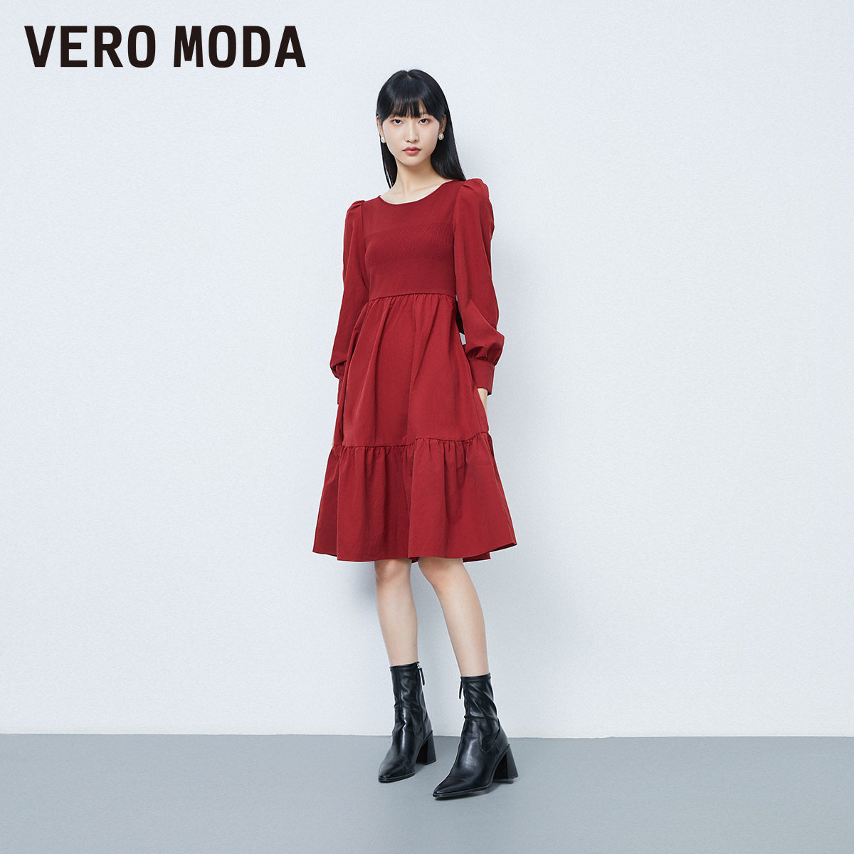 Vero Moda连衣裙2025秋季法式纯色拼接公主裙甜美淑女风32437D007
