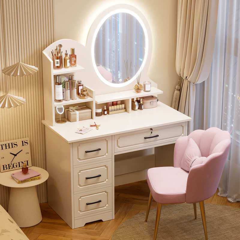 梳妆台卧室简约现代2025新款化妆台镜子主卧化妆柜化妆桌出租房用