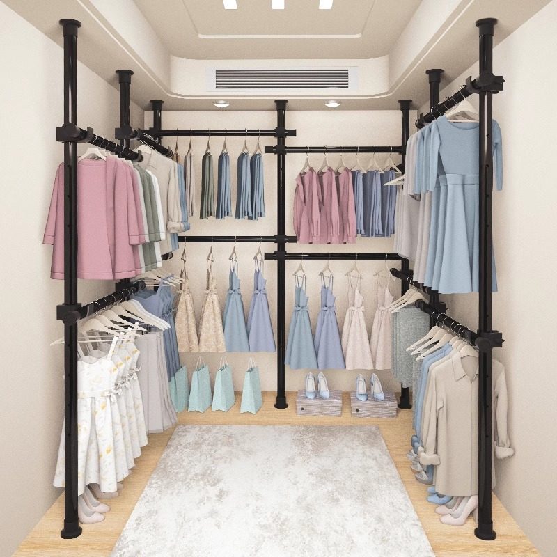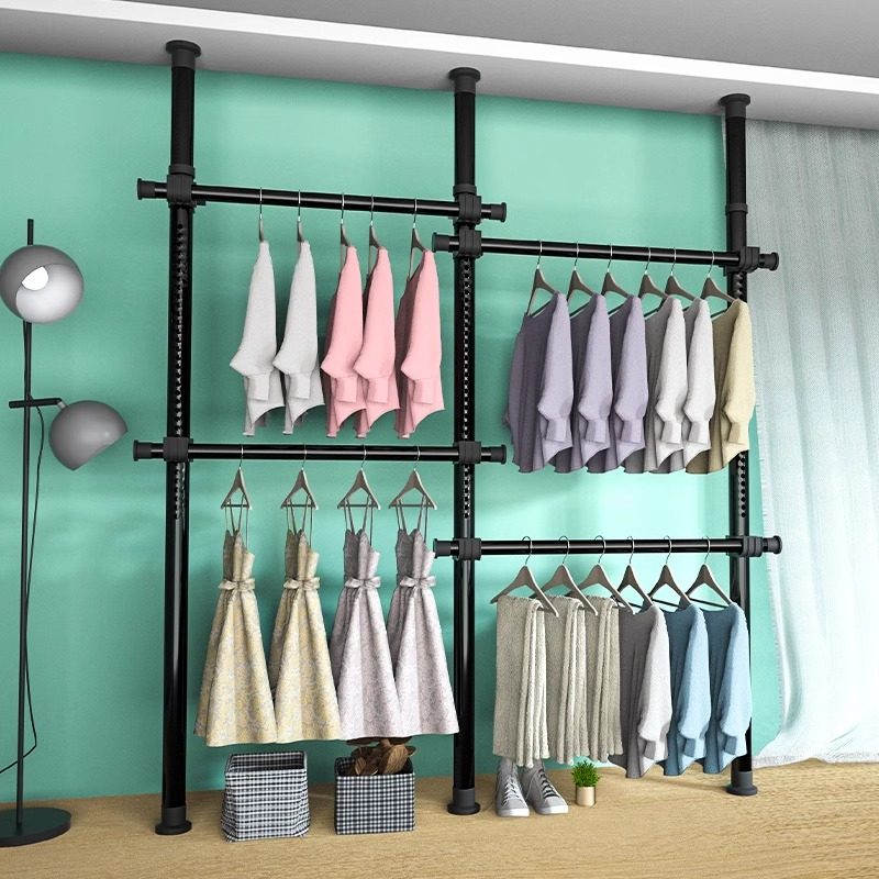 顶天立地置衣架加粗加厚衣帽间架子组装置物柜落地卧室挂衣杆伸缩