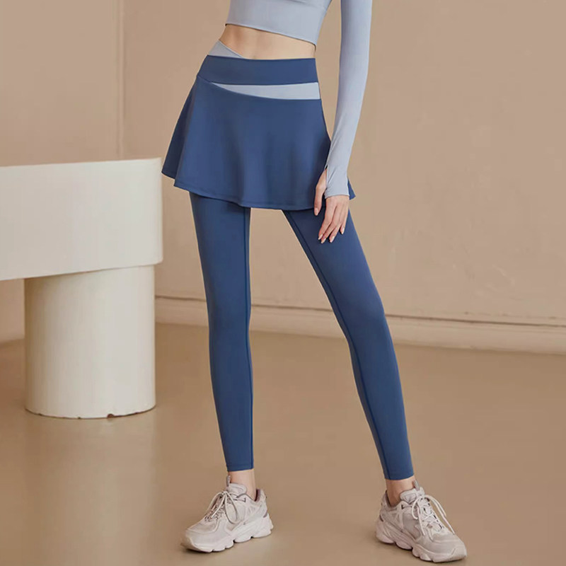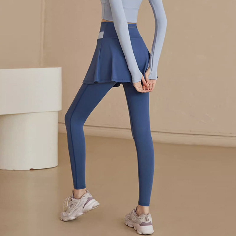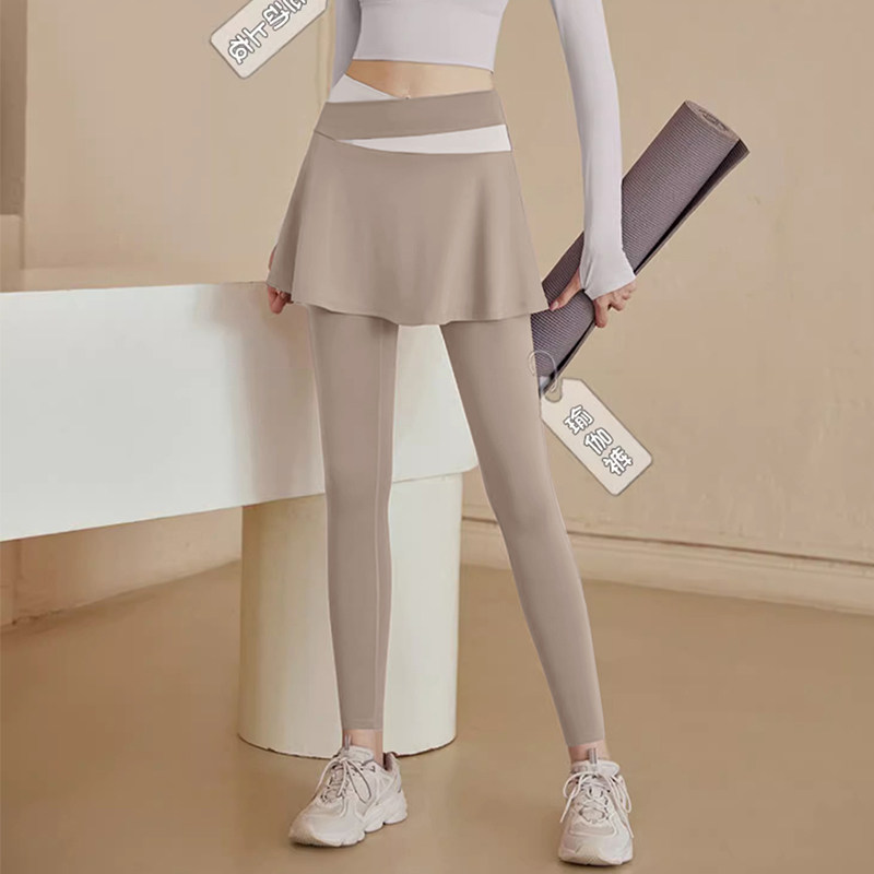 新款秋季假两件透气速干裤运动裙裤晨跑普拉提健身长裤瑜伽服裙子