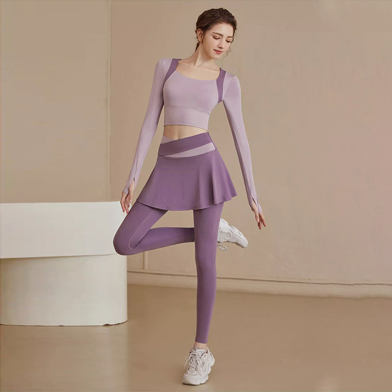 瑜伽长裤女秋外穿运动套装跑步天普拉提训练服健身上衣长袖短袖冬