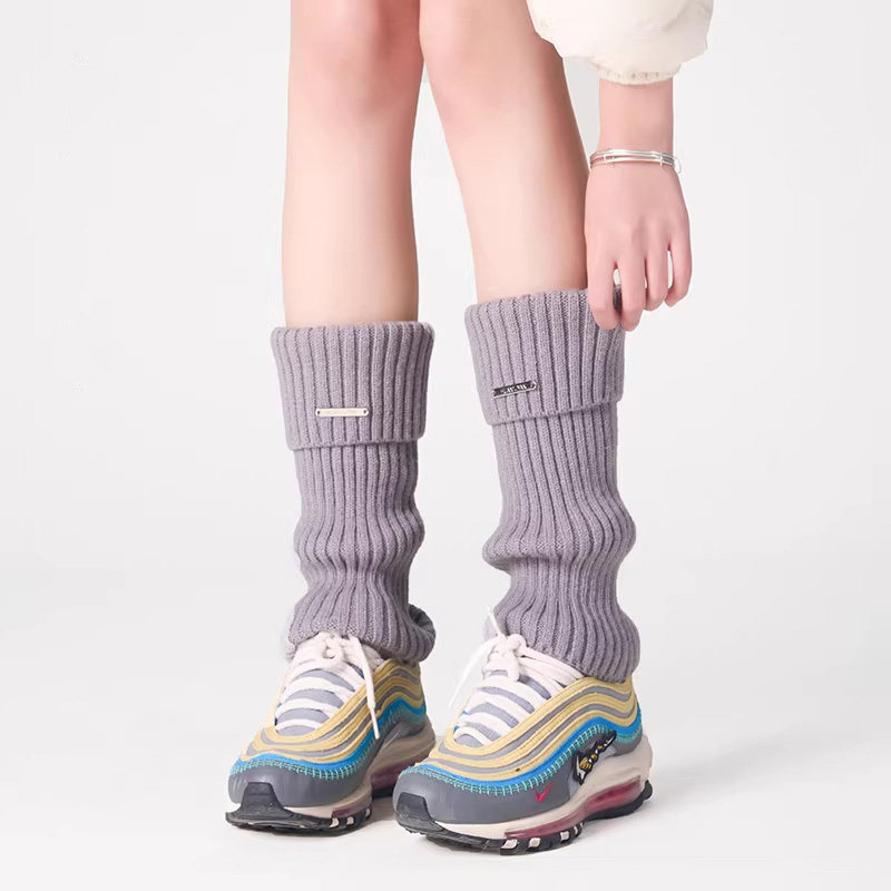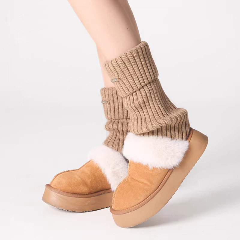 针织腿套女冬季加厚保暖白色袜套配雪地靴女生堆堆袜秋冬款小腿袜