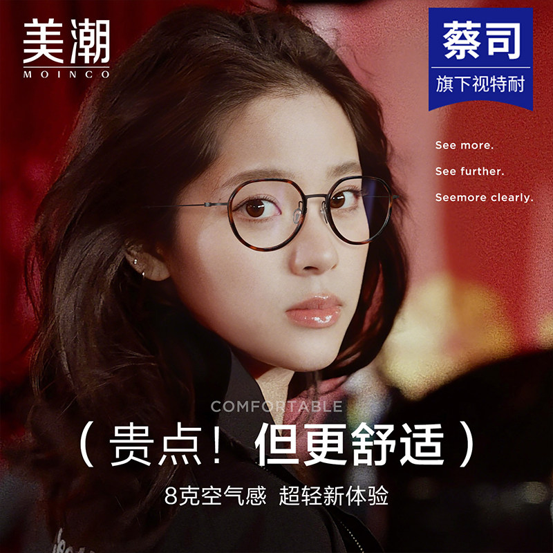 蔡司眼镜片变色时尚男款超轻纯钛眉线眼镜框专业网上配近视防蓝光