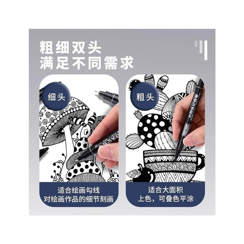 粗细双头勾线笔黑色油性画画防水记号笔美术专用描边笔小学生儿童画笔幼儿园勾边笔油性笔大头笔油笔油漆笔