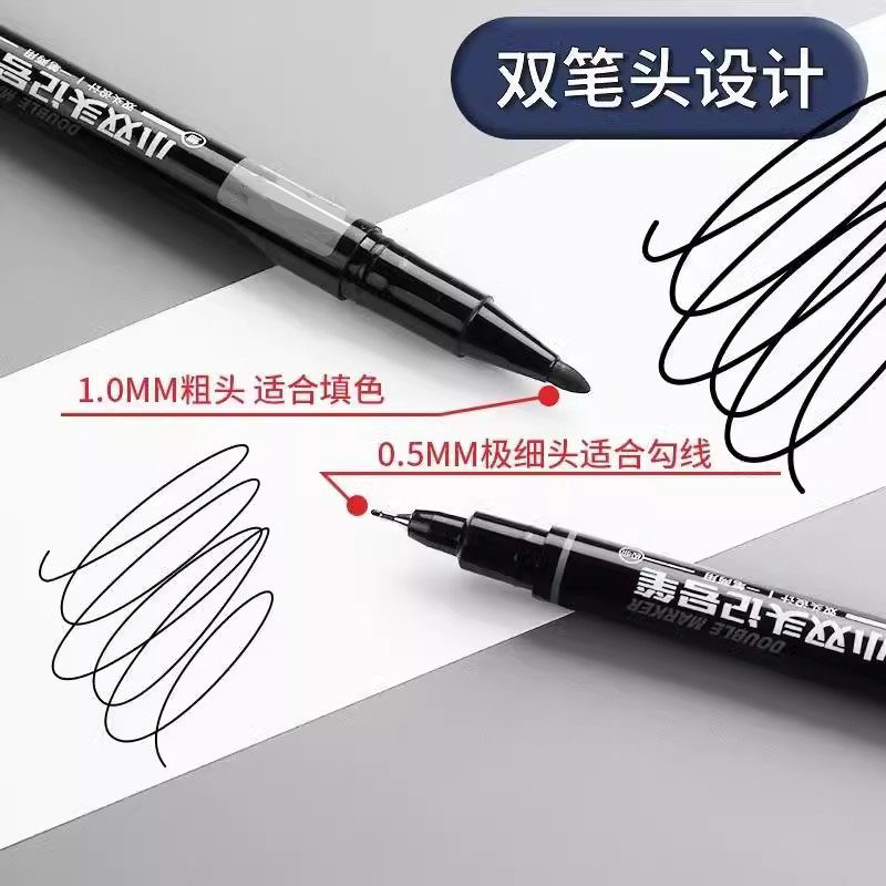 小双头记号笔勾线笔黑色油性速干防水防油不掉色大头马克笔工地美术专用儿童幼儿园小学生绘画描边粗细红蓝水
