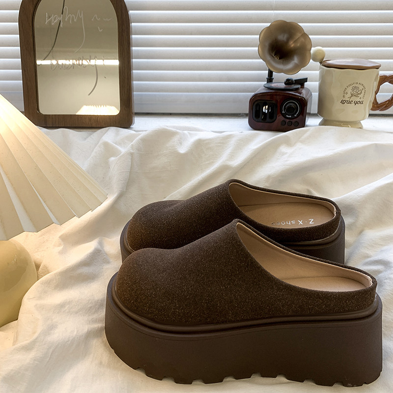 叁叔家~内增高勃肯鞋女加绒秋冬保暖毛毛半拖外穿厚底博肯鞋