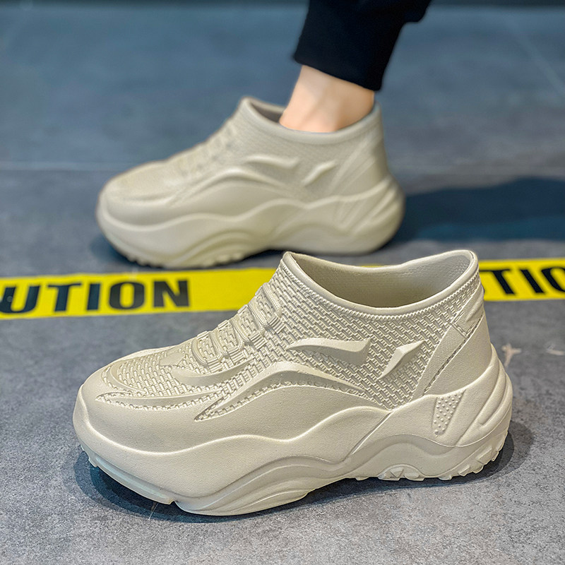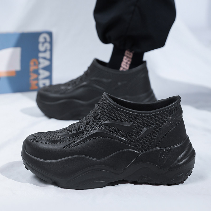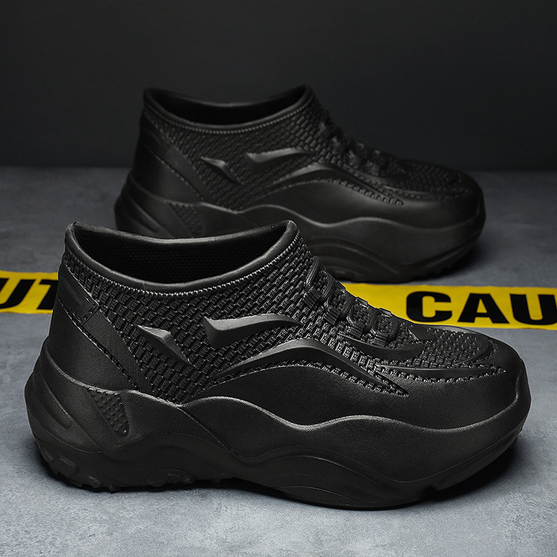 男士户外防滑防水防油工作厨师鞋便捷厚底懒人一脚蹬时尚休闲鞋
