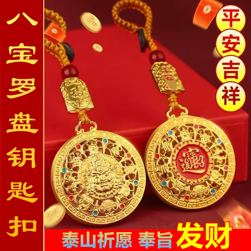古法花丝珐琅福字八宝罗盘吊坠钥匙财神黄铜富贵