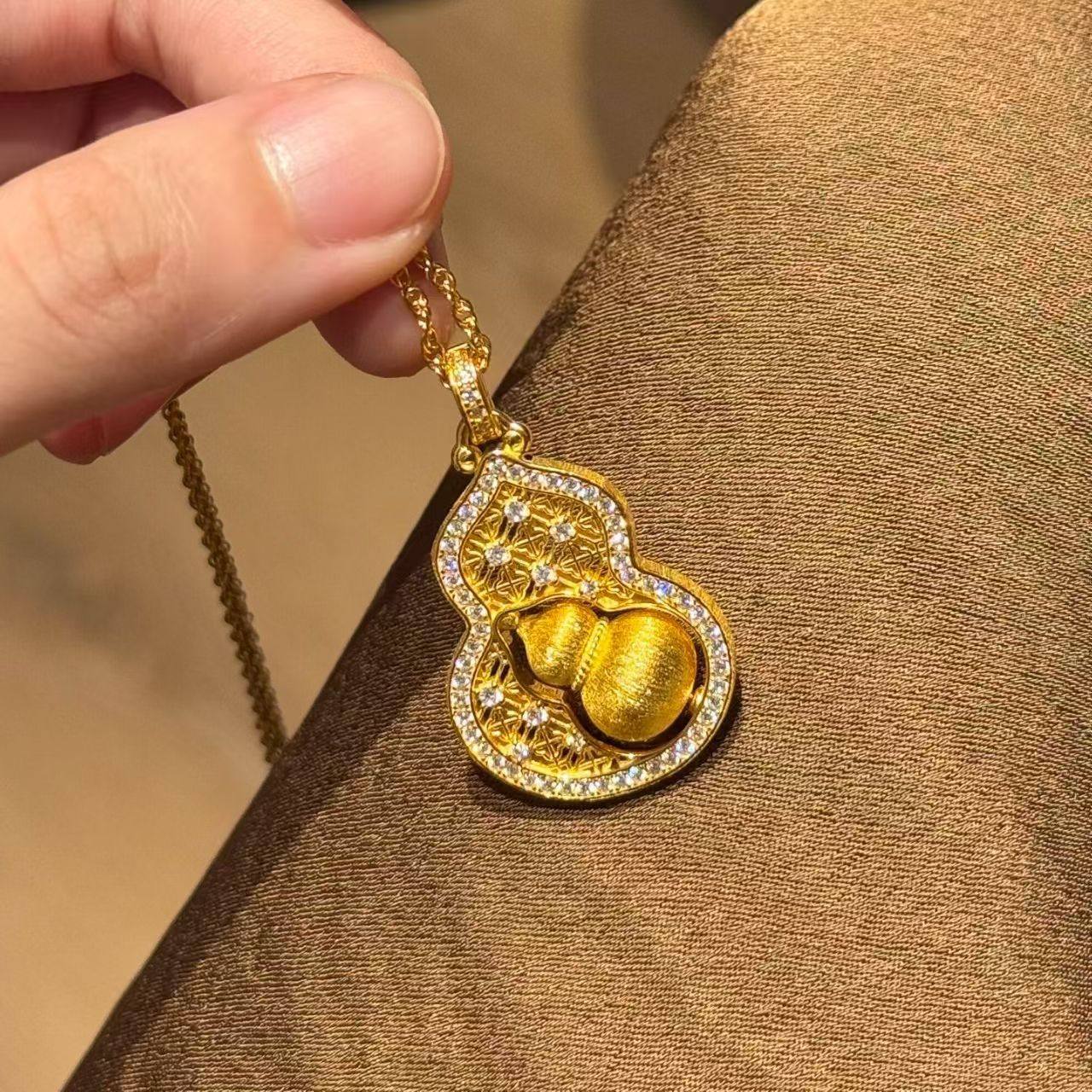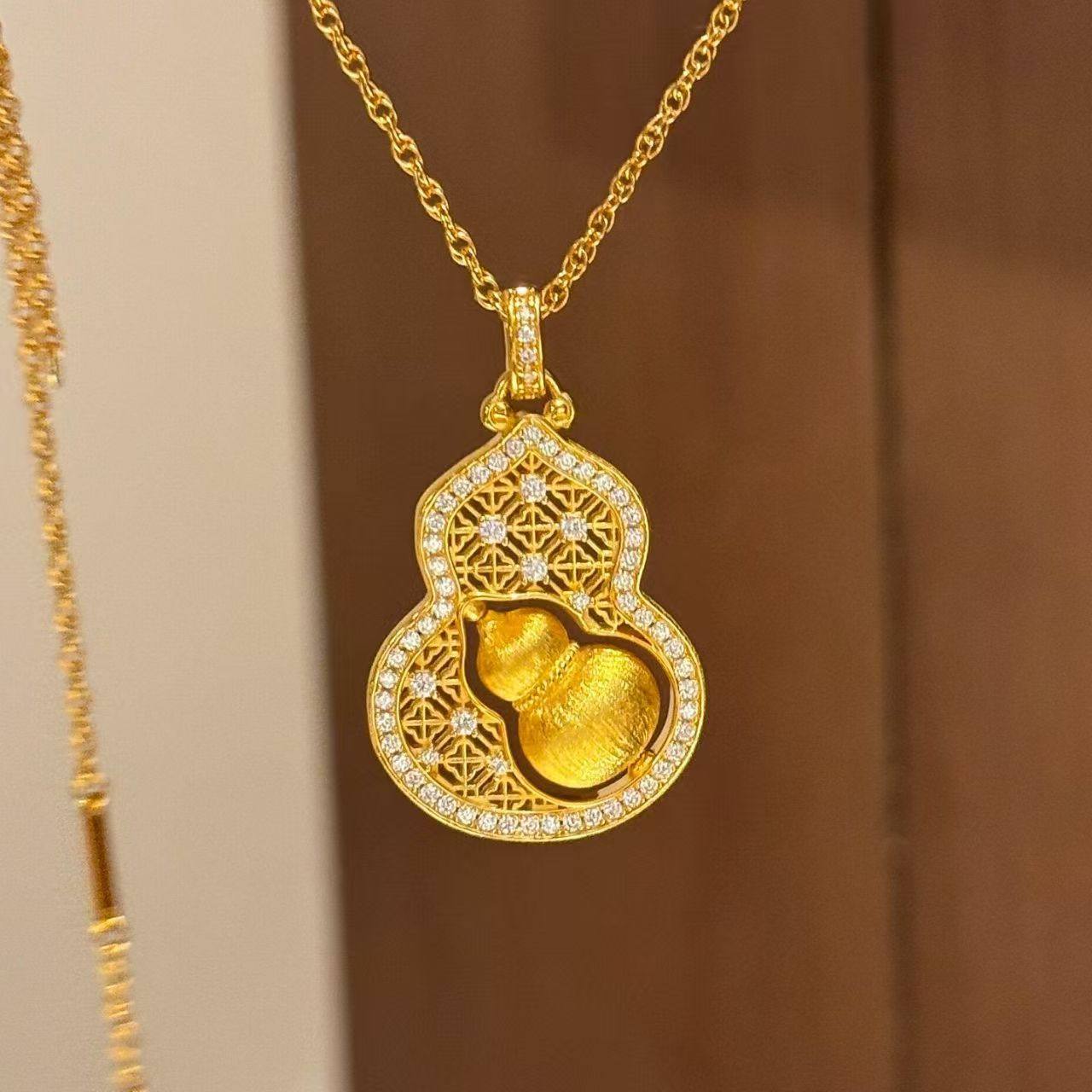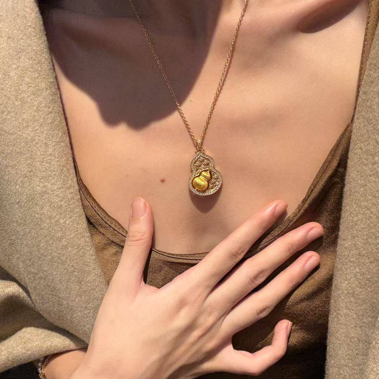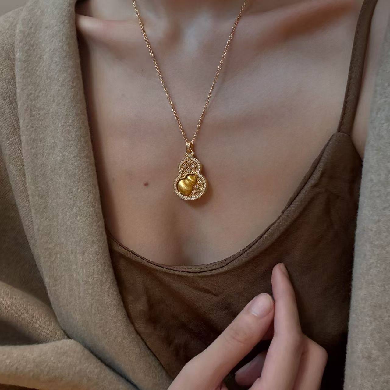 「锦窗纳福」新中式福运雅韵金色葫芦吊坠项链新款高雅国风毛衣链