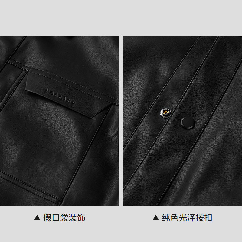 HLA/海澜之家翻领PU皮革夹克春夏新印花挺括质感时尚皮衣外套男装
