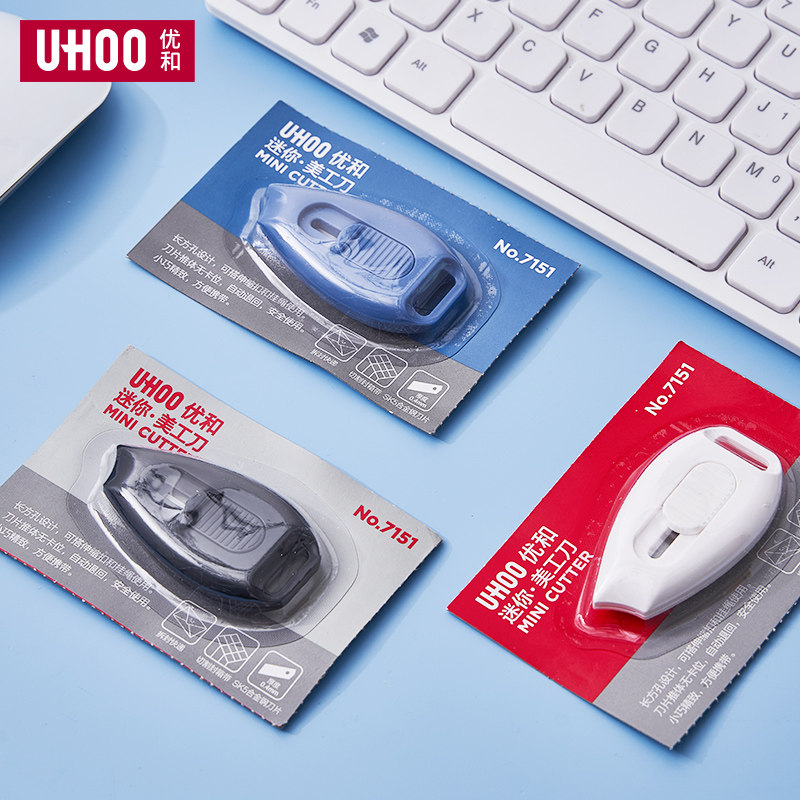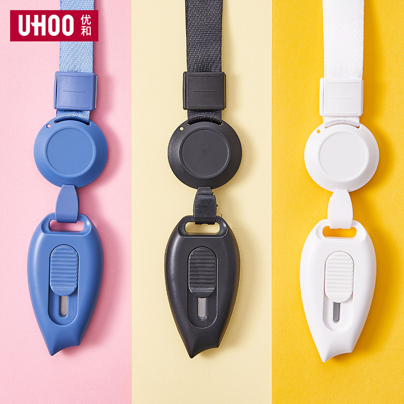 UHOO优和迷你美工刀伸缩扣挂绳快递开箱刀快递刀包装纸箱开箱小刀安全刀学生美术课手工刀切割裁纸刀小型刻刀