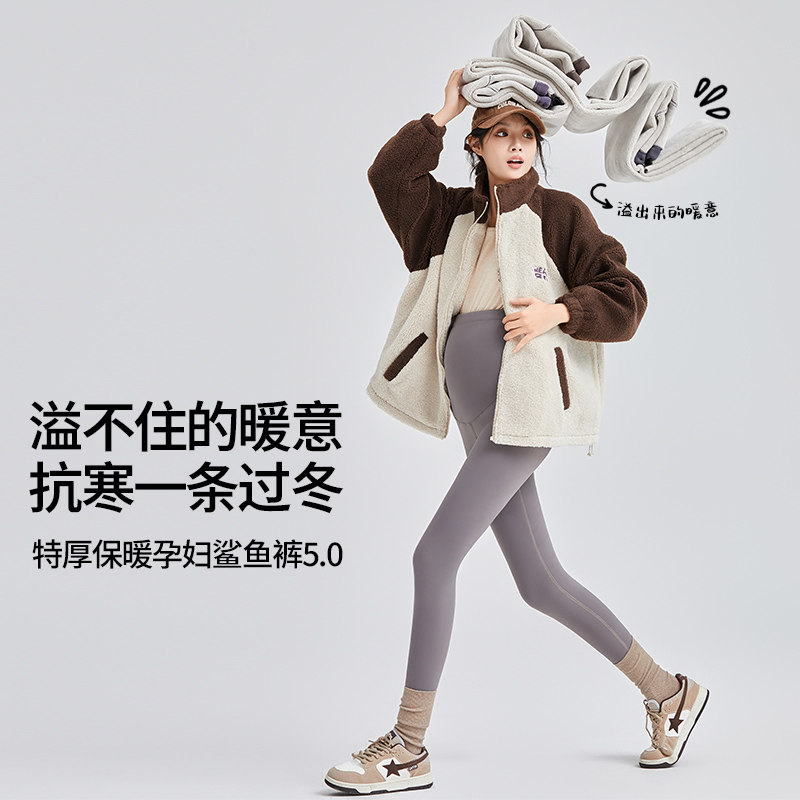 婧麒孕妇打底裤子冬外穿不勒肚子鲨鱼裤孕期加厚保暖瑜伽裤孕妇装