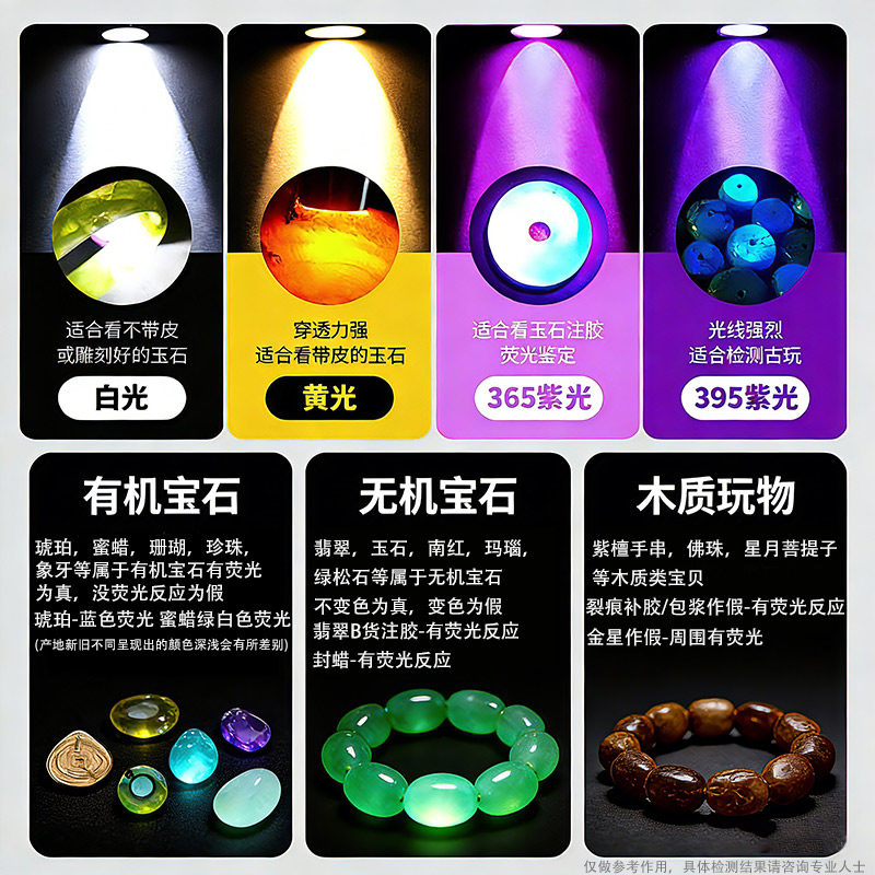 微笑鲨玉石鉴定专用强光手电筒365nm紫光灯文玩翡翠原石珠宝烟酒