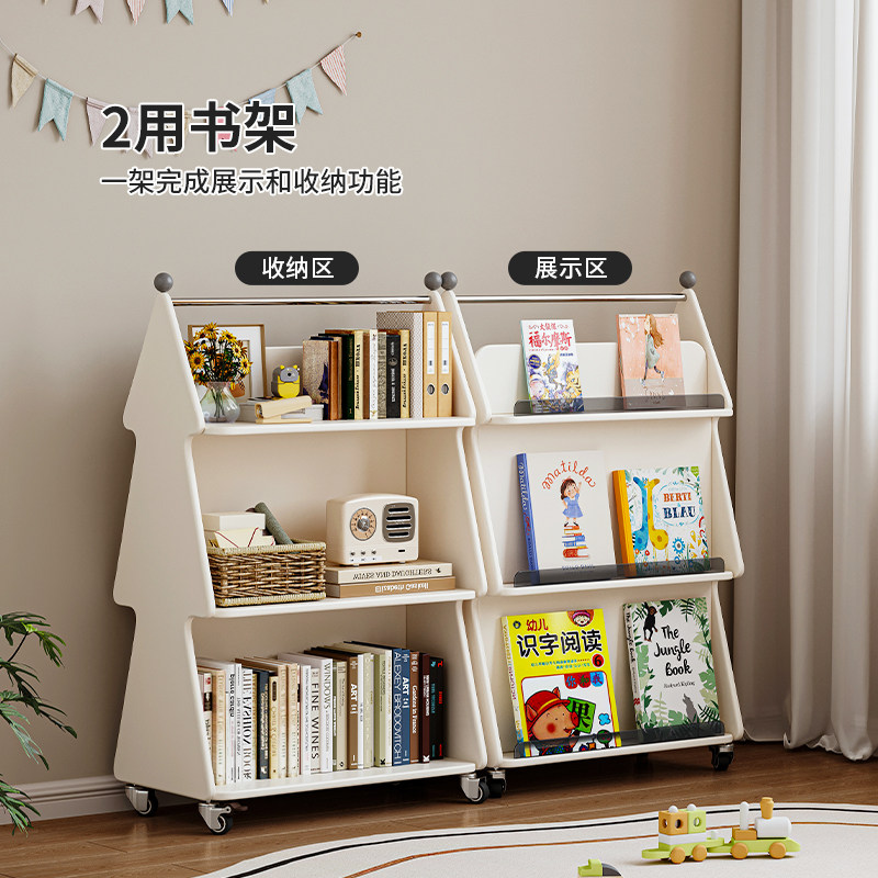 儿童书架可移动双面收纳置物架子落地小型书柜宝宝绘本架玩具书本