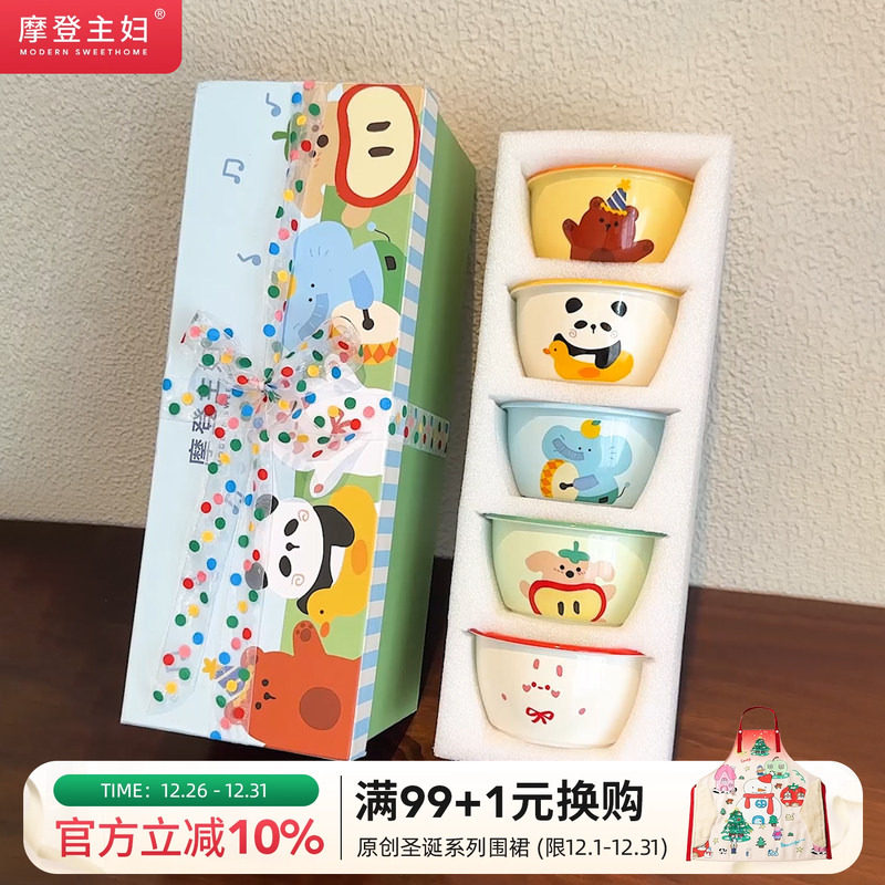 摩登主妇动物派对饭碗家用2025新款生日礼物餐具儿童小碗个人专用