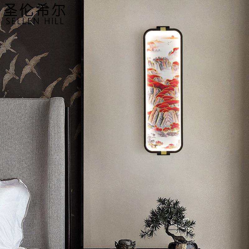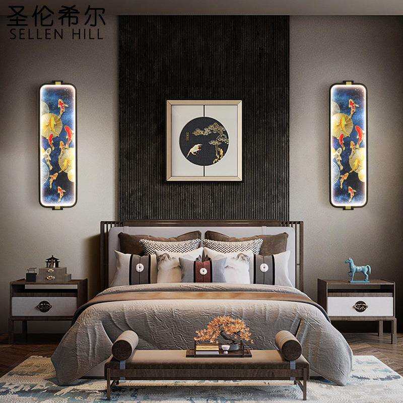 新中式壁灯3D立体卧室床头装饰画房间墙面挂画温馨LED中国风禅意