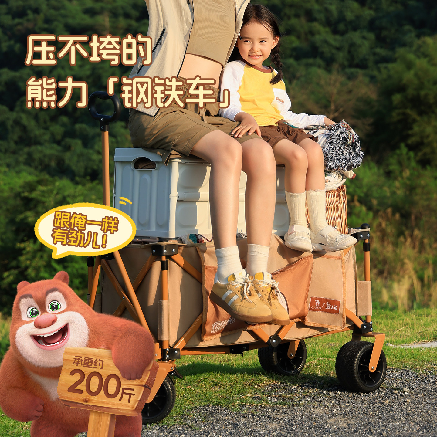 CAMEL熊出没户外熊抱露营车大容量聚拢手推车儿童可躺营地车野餐