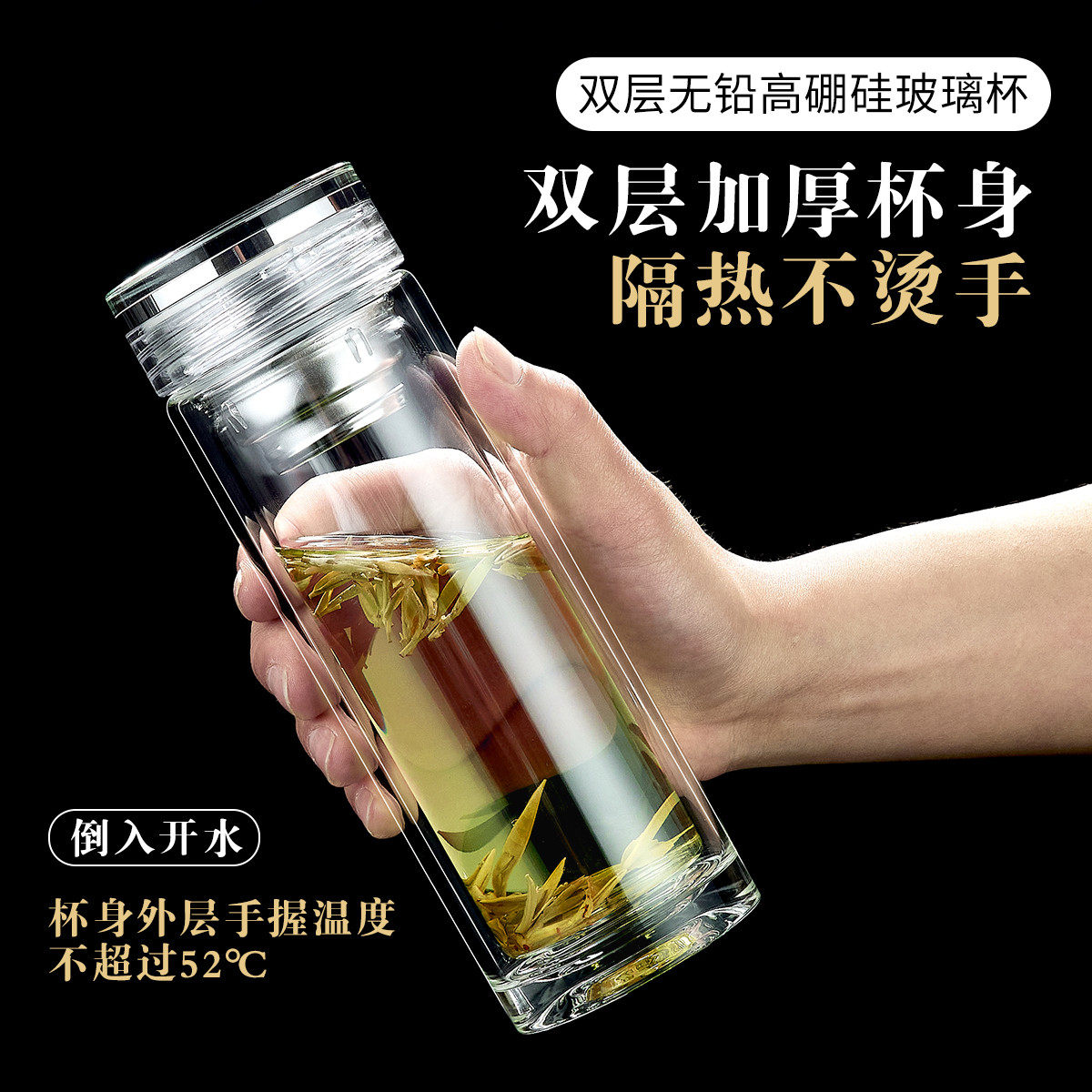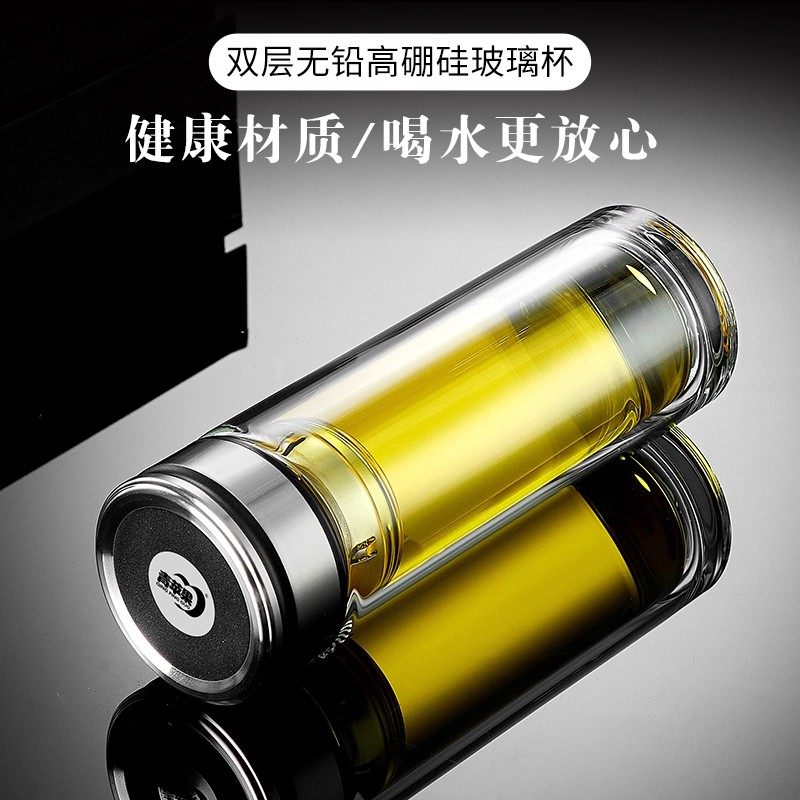 希诺玻璃杯双层保温泡茶杯男士水杯官方正品茶杯女家用杯子礼盒装