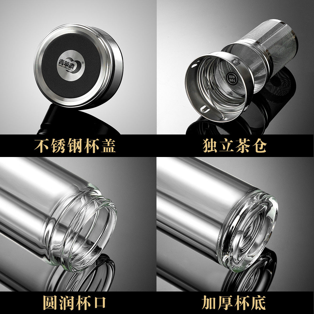 宝选一键开盖水杯车载双层玻璃杯男士泡茶保温速开茶水分离杯茶杯