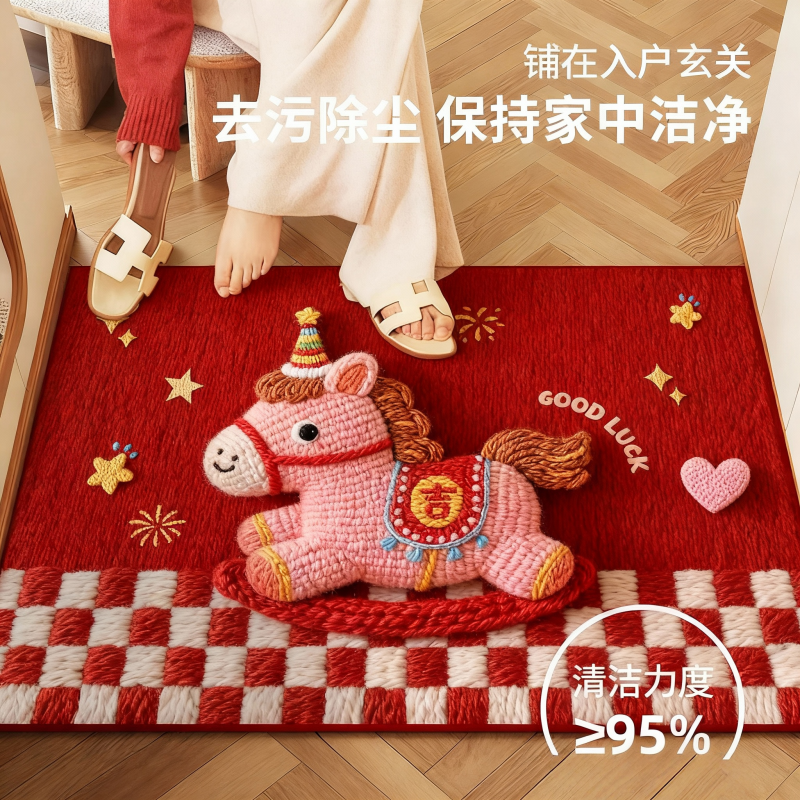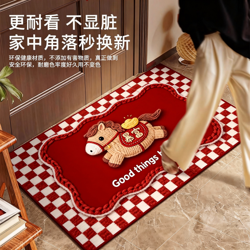 马年入户门地垫家用门口防滑脚垫子除尘耐脏进门玄关高级地毯喜庆