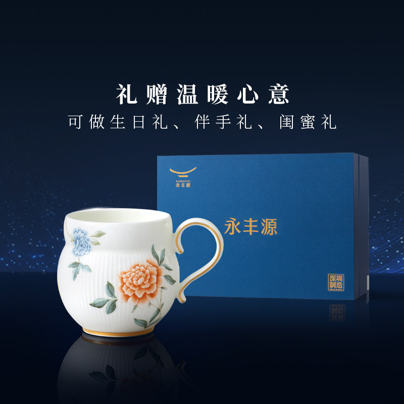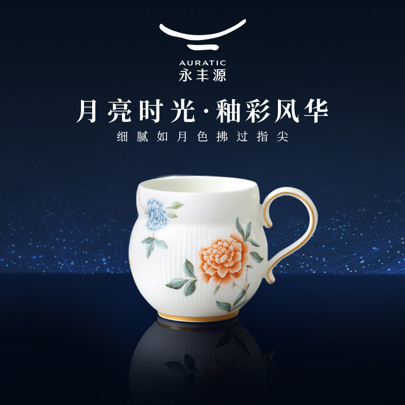 国瓷永丰源月亮时光陶瓷马克杯茶杯杯情侣杯310ml生日礼物礼盒装