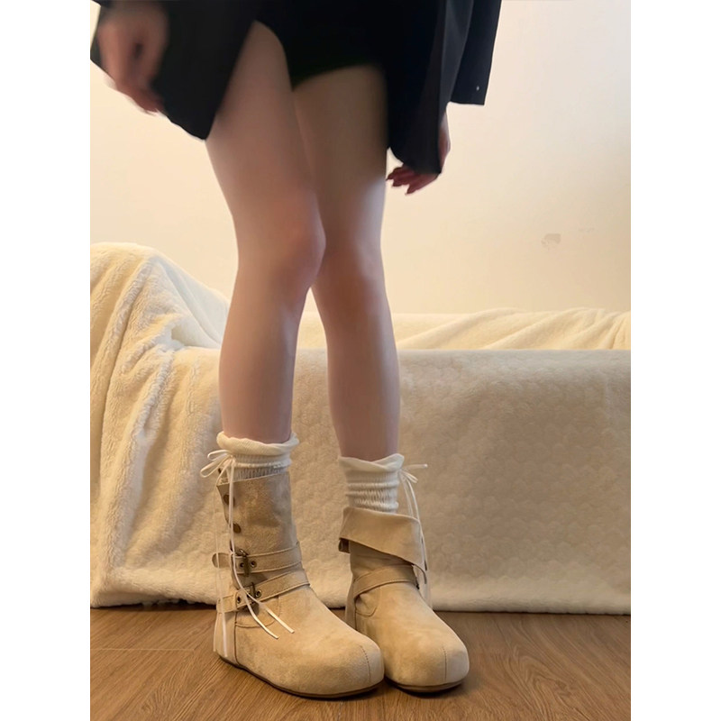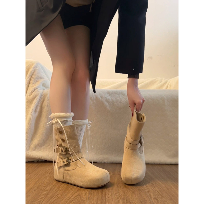 南在南方复古百搭增高厚底靴子女2025新款秋季配裙子显瘦勃肯短靴